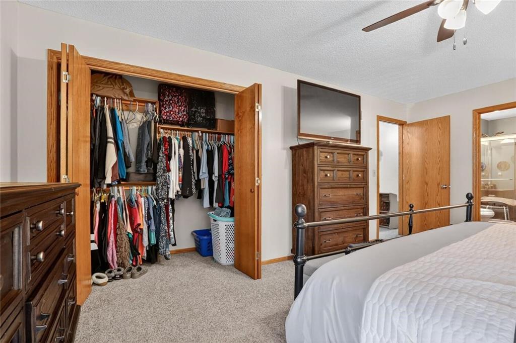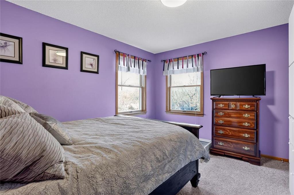 Peaceful Setting in Windmill Springs on an extra-large level (just over an acre!) Lot outside city limits w/no HOA, this 3 Bedroom, 2.5 Bath home offers flexible space for daily living. Entry features a vaulted ceiling, coat closet, & all-new LVP on the main level. The Great Room centers on a masonry brick Fireplace w/oak mantle & brick hearth, 17' Vaulted Ceiling, custom-blind Windows on two sides, library panel to chair rail, Ceiling Fan, & LVP. The Eat-In Kitchen includes black granite Countertops, ceramic tile Backsplash, oak raised-panel Cabinets, under-cabinet lighting, a corner composite farmhouse Sink framed by dual Windows, & a Pantry w/adjustable shelves. Stainless Appliances: Electric Range, Dishwasher & Refrigerator; black Built-In Microwave. Dining opens to a Composite Deck w/aluminum railing that steps to the Backyard. Main-level Laundry offers cabinets & extra storage. A Half Bath is conveniently located on the main level. Upstairs, the Primary Bedroom connects to a Flex Space/Office. The Primary Bathroom features two vanities, an upgraded cultured marble Shower w/glass doors & built-ins, and generous linen storage. Two additional Bedrooms are connected by a Full Bath. A T-shaped Hallway overlooks the Great Room & includes a built-in linen cabinet. The Front-Entry Garage is extra deep for vehicles(3 cars fit), gear, or workshop use, offering insulated Doors w/openers, finished walls & ceiling, over-nine-foot Ceiling height, built-in shelving, work bench, a side Window, & walkout access to the Backyard. Lower Level provides daylight Windows, tall ceilings, storage, & future finish potential. Systems include a Lennox heat pump & a Rheem water heater. Outdoor living adds a fenced garden area, mature trees, a fire-pit, a long concrete Driveway, & a quiet Cul-de-Sac setting. Served by Blue Valley School District. Everyday needs are close by across south Johnson County w/ quick connections to US-69 & 179th Street for commuting, parks, & community amenities.
