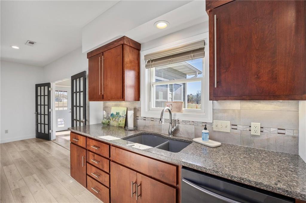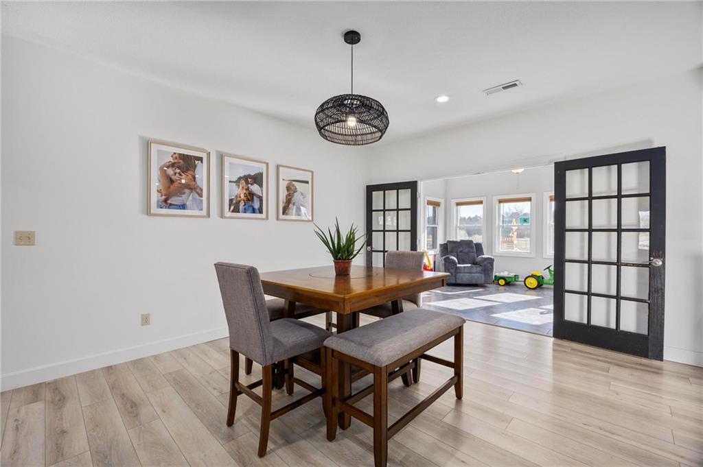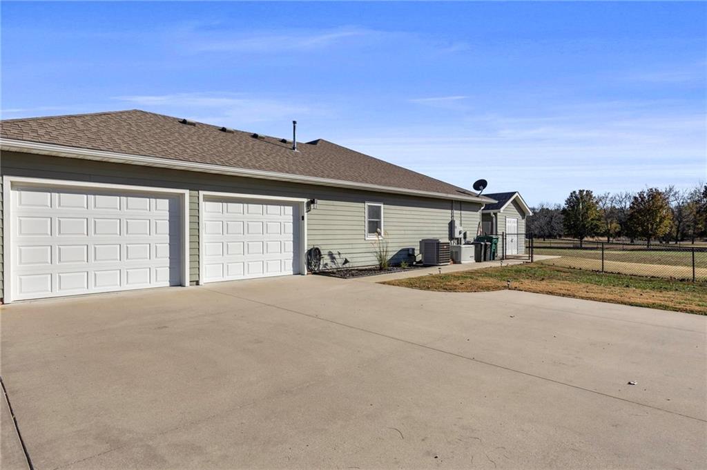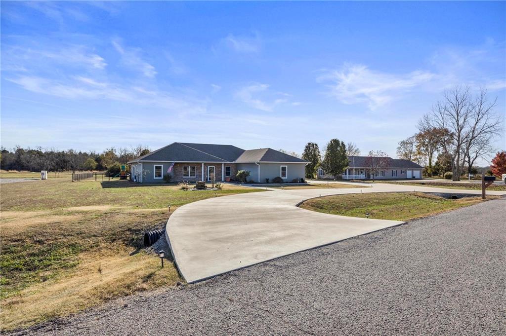 Step into modern ranch-style living with this beautifully designed home, built in 2017, offering 2,338 SF of comfort, convenience, and class. Every detail has been well thought out and executed - inside and out! Once you walk through the front door, the home welcomes you with a spacious open-concept layout, complemented by tall ceilings, light-toned LVP flooring, stylish fixtures, and a fresh color palette. The heart of the home seamlessly blends living, dining, and kitchen spaces, making it ideal for both everyday living and hosting guests. The kitchen boasts a plethora of cabinetry, sleek quartz countertops, a large corner pantry, stainless appliances, and a huge center island. The primary bedroom and en suite bathroom is a true retreat, boasting an oversized walk-in shower and a massive closet. Another bedroom is located close to the primary suite, while two additional bedrooms flank a second full bath on the opposite side of the houe. An enclosed sunroom provides a cozy spot to take in the changing seasons from the comfort of home. The mudroom/laundry room is conveniently located just inside the door from the attached, temperature controlled 2-car garage. While the inside brings the wow factor, the outside also packs the punch! Features include a paved circular drive, a large fenced-in yard, a pergola-covered back patio, a covered front porch, a water feature, and low-maintenance landscaping. Other thoughtful upgrades include a storm shelter, a water purification system, and a Generac generator system. The adjoining two lots (0.9 acres each) are included, for a total of 2.7 acres, and the middle lot has a 60'x60' pad with electric run to it, just waiting for you to build your dream shop or a guest cottage. With its modern design, premium features, and an unbeatable location, this property is a rare gem that truly has it all!