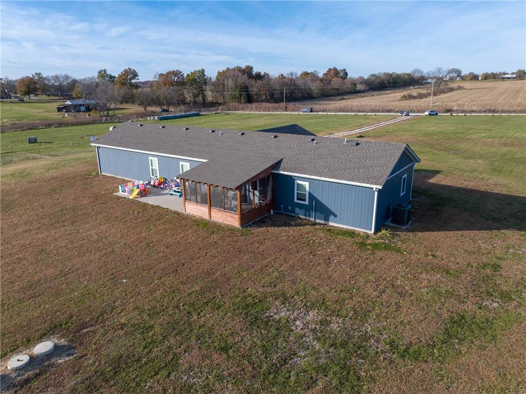 If you're looking for peace and quiet this is the place. Newer ranch home sitting back off the road on 20 acres m/l, with beautiful views all around the property. The well-planned layout is sure to impress with large open living room kitchen area, kitchen has walk in pantry, quartz counters, SS appliance, large island, custom tile and vent hood and much more. On one end of the house, you will find a half bath with full laundry room and tankless water heater, so you never run out of hot water. Also, a beautiful master bedroom with spa like master bath complete with soaking tub and tiled walk-in shower and oversized walk-in closet. On the opposite side of the kitchen in living room you will find three more generous sized bedrooms with a full bathroom. Further down the hall is a large secondary family room with built in safe room and dual French doors to the outside. You can choose to relax on the covered front porch overlooking the front of the property or sit out back on the covered screened in porch and look out on the pond and the rest of the land. This well maintained and built home is ready for its next owner.