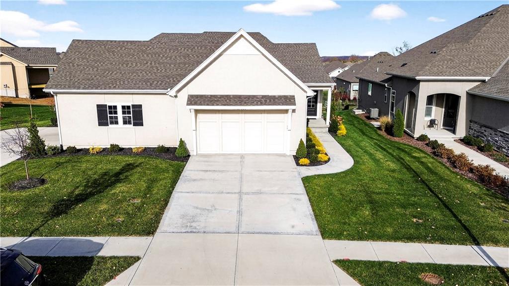 Beautiful one-owner villa in highly sought-after Bristol Highlands—meticulously maintained and truly move-in ready! This maintenance-provided home features upgraded landscaping, a full sprinkler system, and an inviting open-concept floor plan perfect for everyday living or entertaining. The light and bright kitchen offers white cabinetry, upgraded stainless steel appliances (including a gas range and large refrigerator), and flows seamlessly into the dining area. Enjoy hardwood floors throughout the kitchen, dining room, and living room. The living room features an upgraded stone fireplace, new TV (stays), and walks out to a fantastic covered deck overlooking the backyard. The main-level primary suite includes a spacious ensuite bath with separate tub and shower, tile floors, and a HUGE walk-in closet. A wonderful main-floor office—with its own full bath—can also function as a second bedroom. The finished lower level provides a generous rec room with TV (stays), two additional large bedrooms, a full bath, and excellent storage space. Additional highlights include a large 2-car garage with a brand-new epoxy floor. A must-see villa in a premier location—don’t miss this one!