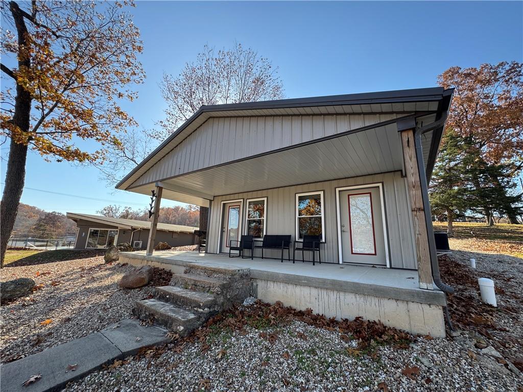 This adorable lake view cabin sits in the heart of Bass Point Resort on Lake of the Ozarks, offering just under 1000 square feet and two full bedrooms that easily accommodate queen beds. Most furnishings stay, making this the perfect low-effort personal getaway or ready-to-launch short term rental. The home features durable metal siding and a metal roof for easy maintenance, south and east facing porches for morning and afternoon sunrise & sunset lounging along with two jet ski ramps with direct lake access. Inside the full kitchen provides plenty of room for cooking as well as entertaining. You’ll find a large full bathroom with double sinks and a walk-in shower with a rain head shower head, plus bonus washer and dryer hookups located in the kitchen. (Washers & dryers available in the club house just across the street) Short term rentals are allowed nightly, weekly or monthly from April 1st through October 31st, making this a strong seasonal investment property. Bass Point Resort amenities are a major highlight and include three pools with an indoor and outdoor pools a kiddie pool, a covered fishing dock, a swim dock, boat slips up to thirty feet with electric, kayak and paddleboard rentals, a full tennis court striped for four pickleball courts, disc golf, horseshoes, playground, community fire pits and a large event space known as the Commodore Room with a full kitchen and bar. Boat docs can be rented for $18/night or purchased. The entire resort has free WiFi, and cable is available in every cabin. This practically new cabin gives you stunning lake views, solid rental potential and full access to one of the most amenity packed resorts on the lake. Perfect for anyone wanting a turnkey personal escape or an income producing seasonal rental. Don't miss your chance to live your best LAKE LIFE!!