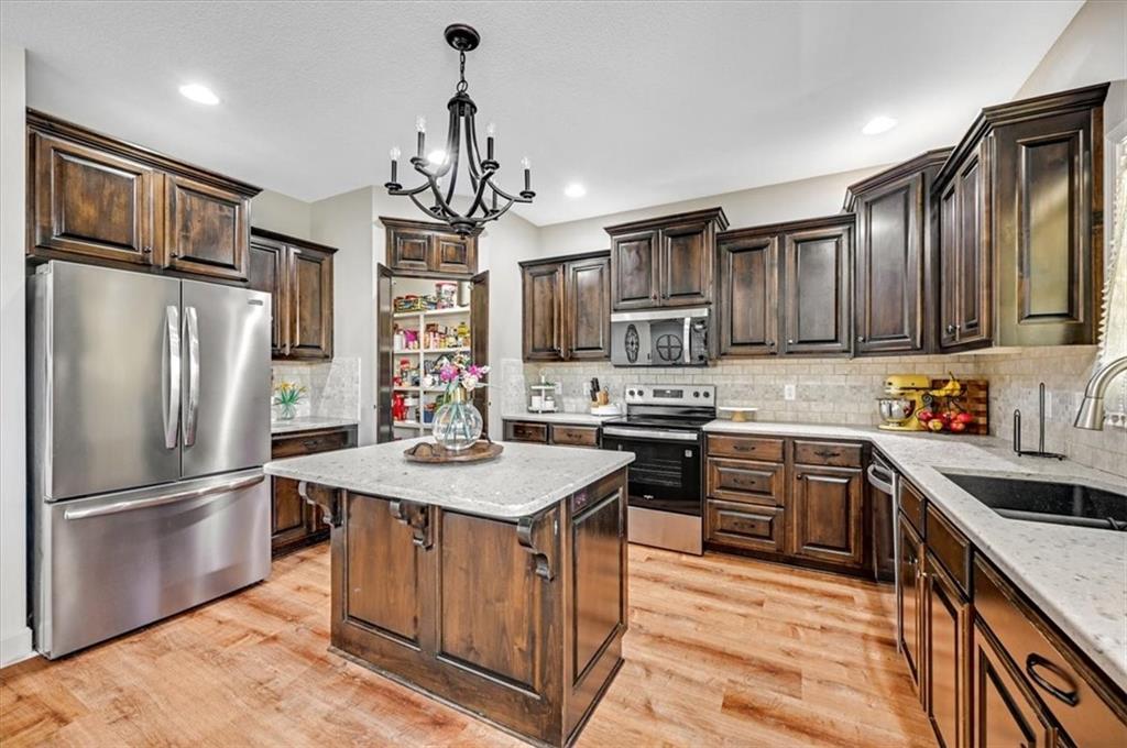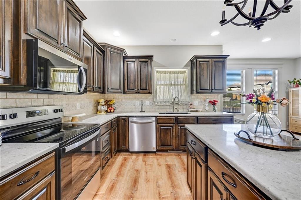 This large home has an open floor plan on the main level with lots of details. Great room boasts a fireplace, beautiful coffered ceilings and a large windows. Kitchen has an ample island and a walk-in pantry. The dining area walks out to the fenced backyard and covered patio. Upstairs bedrooms have attached jack and jill baths & walk-in closets. The primary bedroom has a tiled walk-in shower, soaker tub and huge closet with adjoining laundry room for your convenience! Lower level has an additional bedroom and a family room big enough to handle all your gatherings! Located just across the street from Lansing High School!