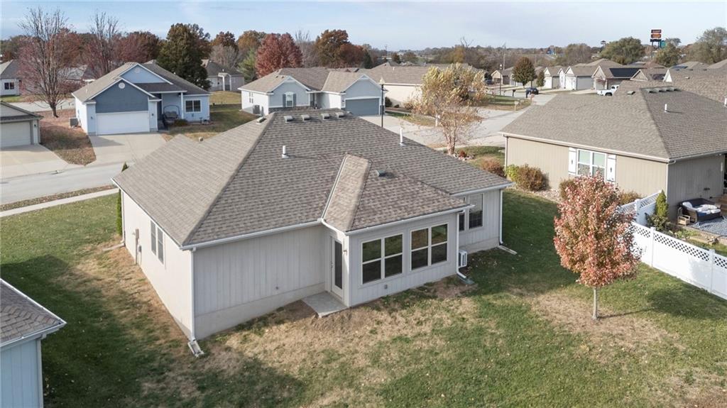 Better than new & in great shape! This home has beautiful granite in the kitchen & both bathrooms. The kitchen has a pantry, an island & stainless steel appliances. It is open to the dining area and the living room for an open feel. The kitchen walks out to a nice 4 season sunroom. In the primary suite you will find custom barn door window coverings, double vanity & walk-in closet. Carefree living in this maintenance free 55+ community. Low HOA fee covers lawn maintenance, snow removal, clubhouse & trails. One level ranch! 2 bd, 2 full baths, 2 car garage. Move in ready!
