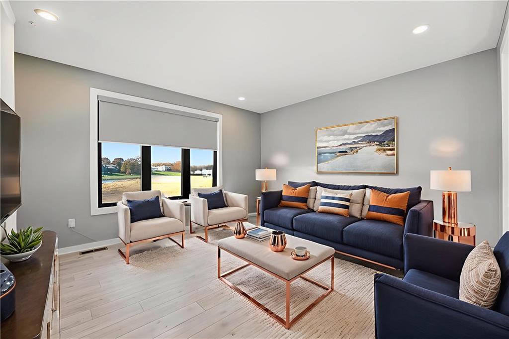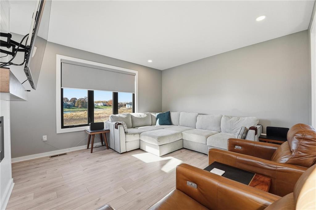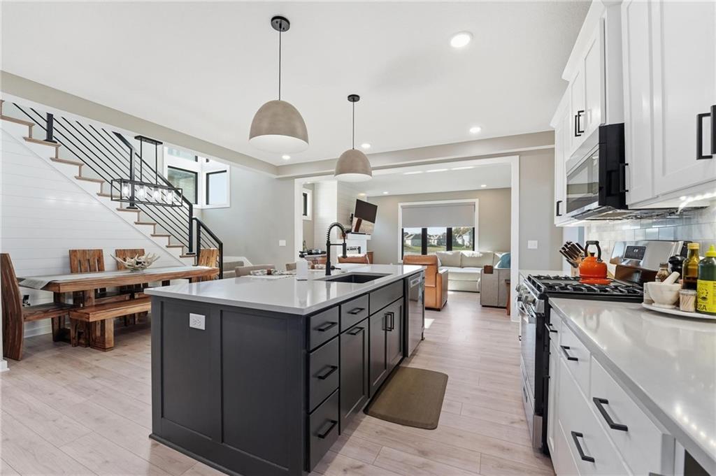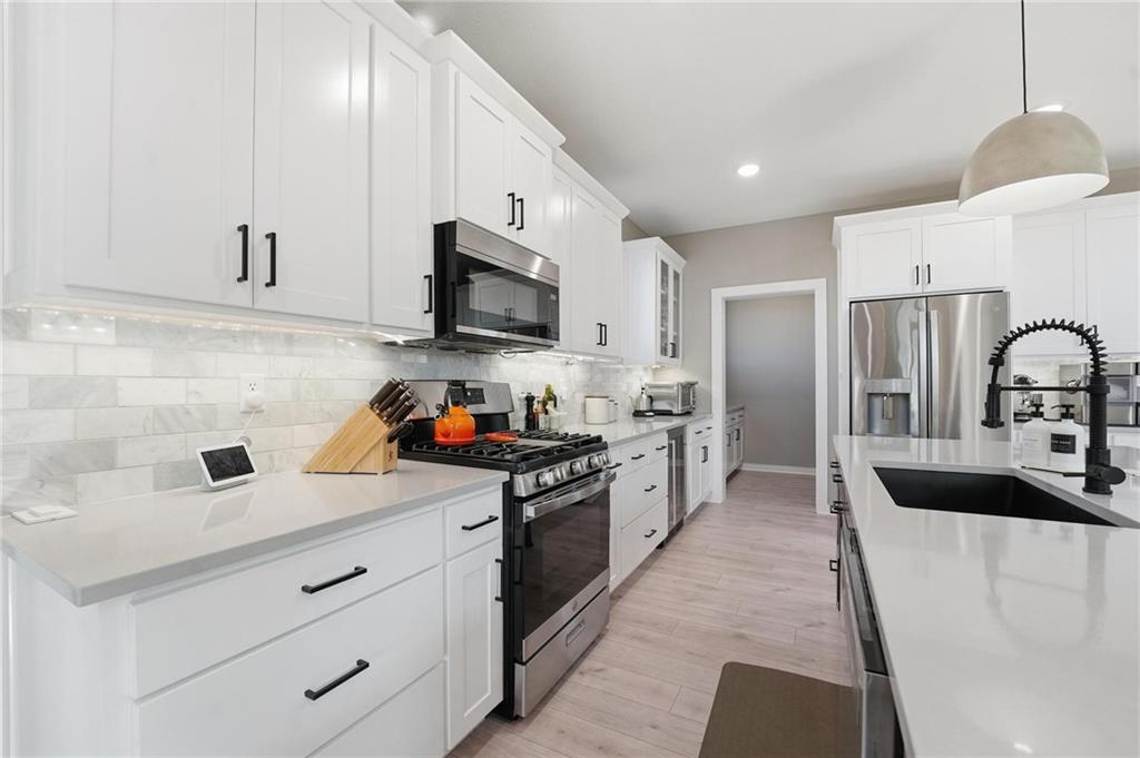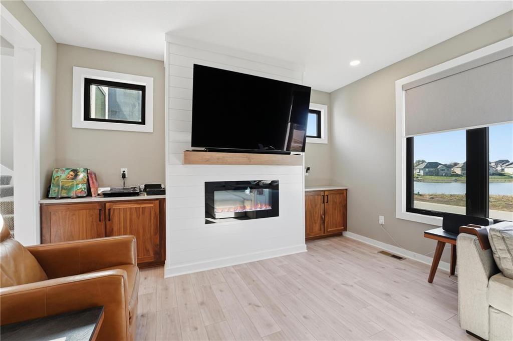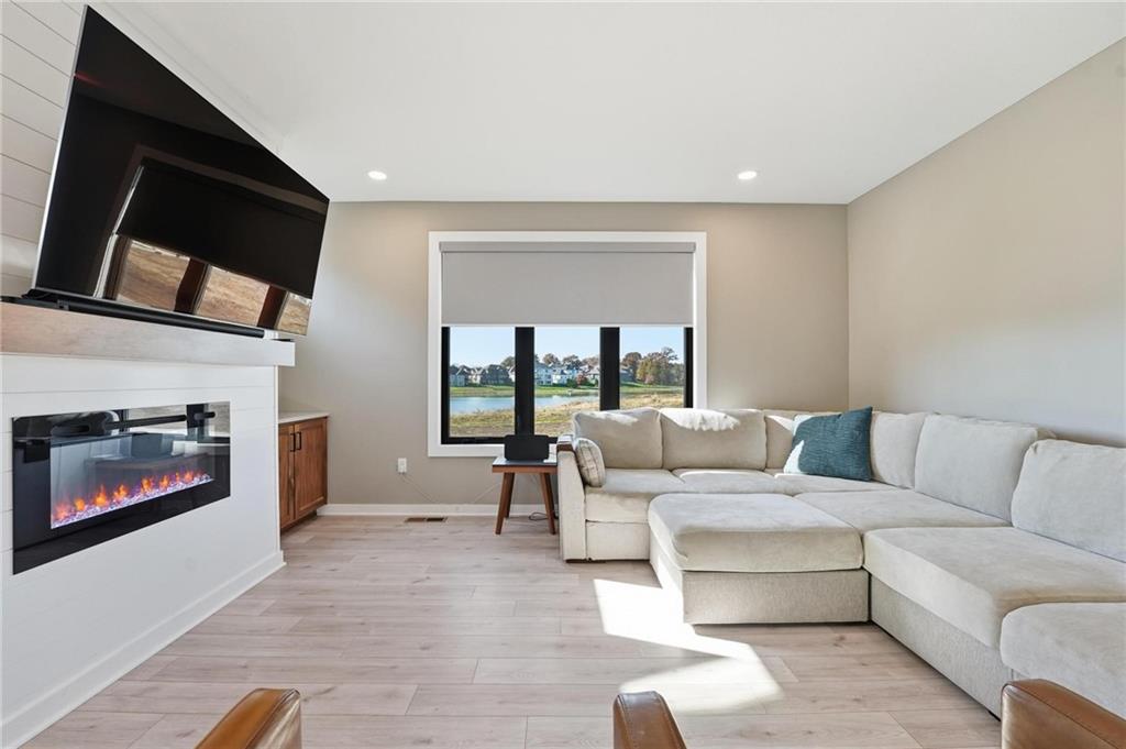 Exquisite Two-Story Home with Water Views in Warrensburg Discover a rare blend of modern luxury and natural beauty in this stunning two-story home overlooking a peaceful pond/lake where blue herons and even bald eagles are known to visit. With its striking stucco front and hardie board-style siding, this home delivers impressive curb appeal from the moment you arrive. It is so larger than it looks! Step inside and be greeted by soaring ceilings, abundant natural light, and expansive custom windows that showcase the serene lake views. The grand staircase makes a statement of its own—graceful, open, and truly fit for royalty. The heart of the home is the chef’s kitchen, designed for those who love to cook and entertain. Featuring quartz countertops, painted walnut cabinetry, a large center island, and a butler’s pantry, this kitchen offers both elegance and functionality. The open-concept living area flows seamlessly, highlighted by a modern linear electric fireplace and stylish white walls accented with black hardware for that clean, contemporary look. Upstairs, enjoy spacious bedrooms with large closets and an enormous walk-in primary closet that feels like a boutique. The large laundry room and built-in drop zone/mudroom bench add everyday convenience and thoughtful design touches. Step outdoors to a flat, black-fenced backyard and enjoy evenings under the open sky, or sip your morning coffee from the covered front porch as you watch the sun shimmer across the lake. The home also features custom-fitted smart blinds and in-ground lawn irrigation for effortless maintenance. This home is not your typical cookie-cutter design—it’s a statement of taste and individuality, where every detail has been carefully curated for comfort and style.