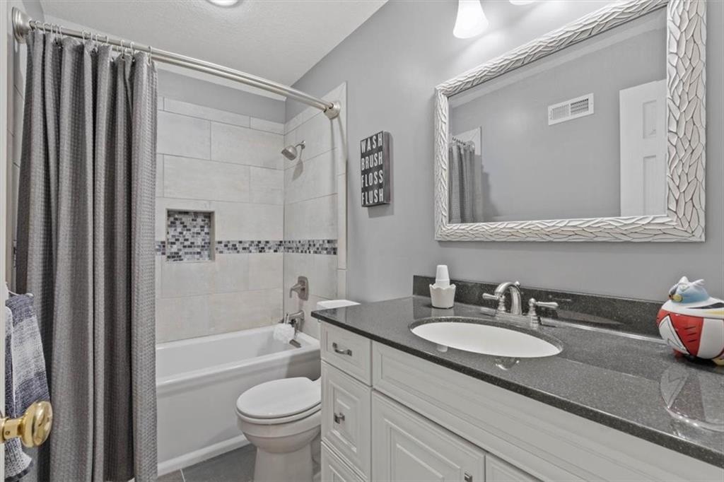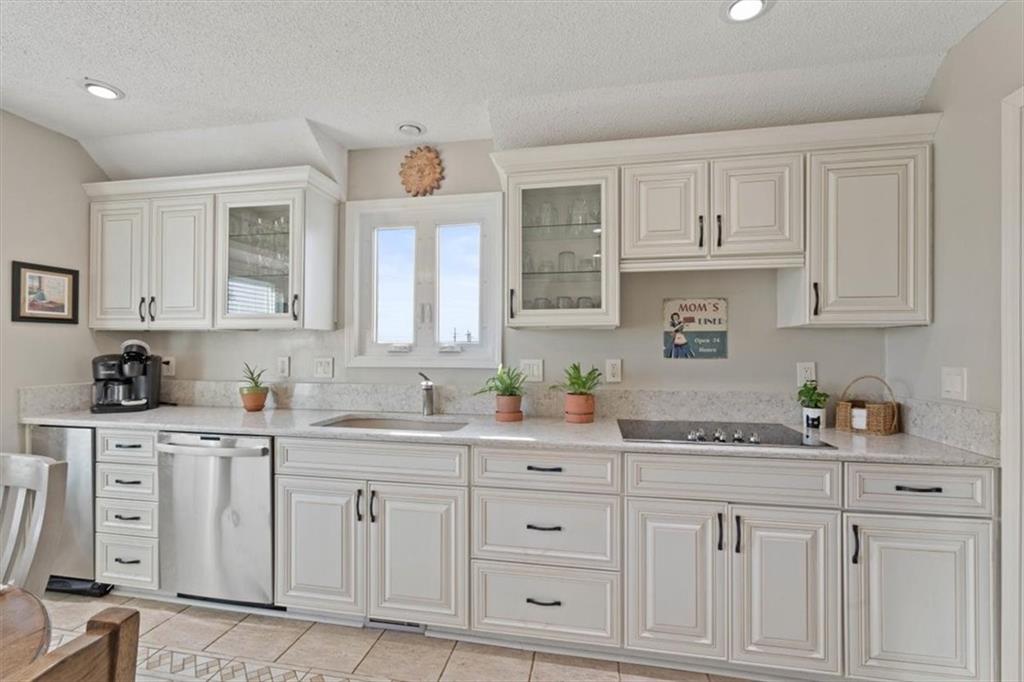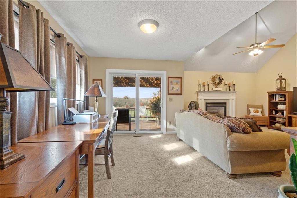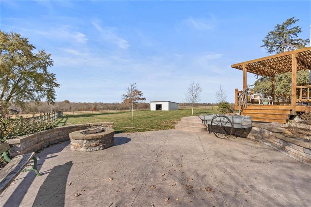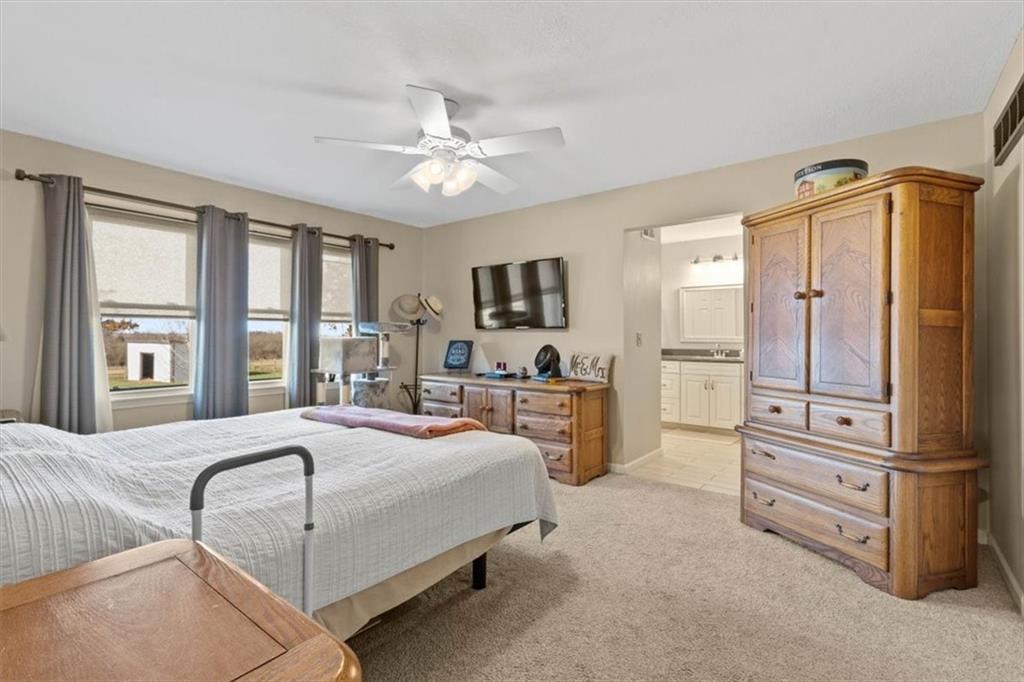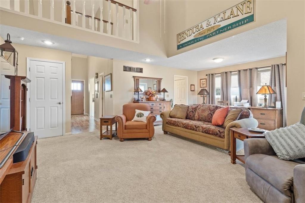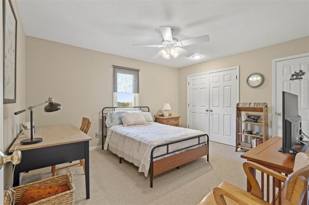 Experience the perfect blend of country charm and modern convenience in this 1.5-story Gardner home, nestled on 3.3 level acres with a long, picturesque driveway. Beautiful stained wood siding gives the home a warm, inviting country feel. The main floor features an updated kitchen with custom cabinetry, granite countertops, and stainless steel appliances. The eat-in kitchen boasts two pantries—a custom cabinetry pantry with pull out shelving and a double closet pantry conveniently located in the hallway leading to the dining room. A laundry closet is also tucked into this hallway for added convenience. The spacious family room impresses with a vaulted ceiling and an open area to the second floor, creating a bright, airy atmosphere. A gas fireplace adds warmth and ambiance, while the adjacent dining area overlooks the backyard, deck and oversized patio with fire pit, ideal for outdoor gatherings. The main floor master suite easily accommodates a king-size bed with plenty of additional space. The ensuite bath has 2 large closets and a linen closet. Upstairs, you’ll find three generously sized bedrooms and a stylishly renovated full bath. The unfinished walk-up basement offers incredible potential to create additional living space tailored to your vision. Just steps from the driveway is a small 23’x18’ barn or workshop with a door wide enough to store a vehicle. attached to the back of the barn is lean to style covered open storage. There is an additional shed in the back as well. This home perfectly captures country living while keeping the conveniences of the city close by—a rare find in Johnson County. Enjoy the peace and privacy of a spacious, rural setting, while still being just minutes from shopping, dining, schools, and all the amenities the city has to offer. It’s the best of both worlds—your own country retreat without sacrificing modern convenience. *The ramp is not permanent and the sellers can remove upon request*