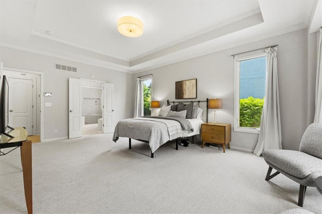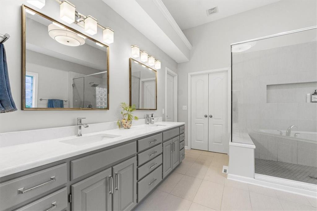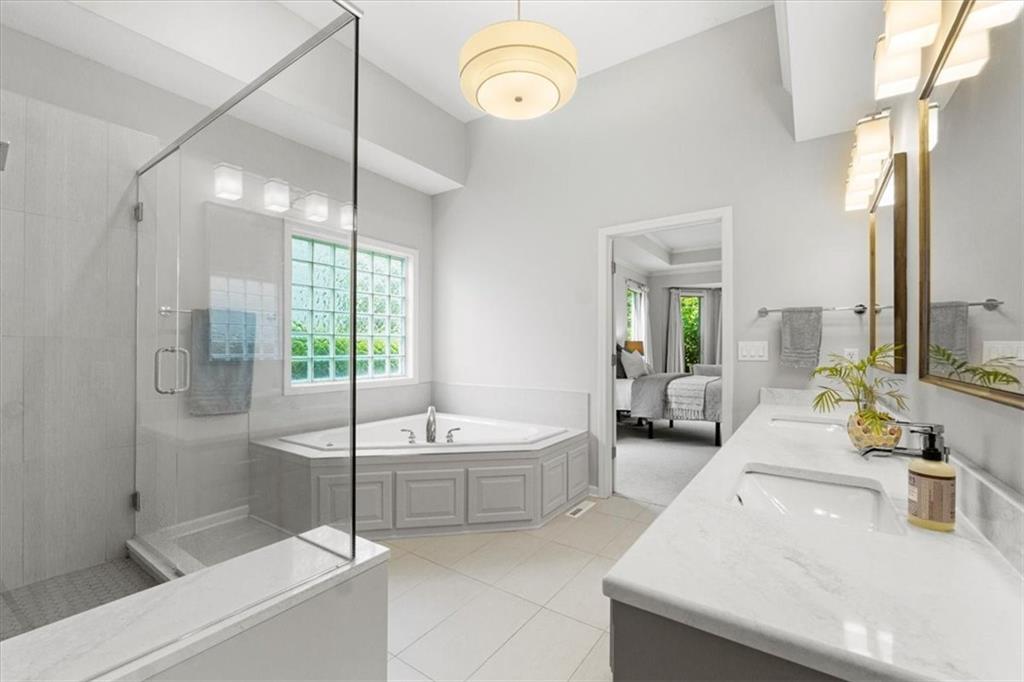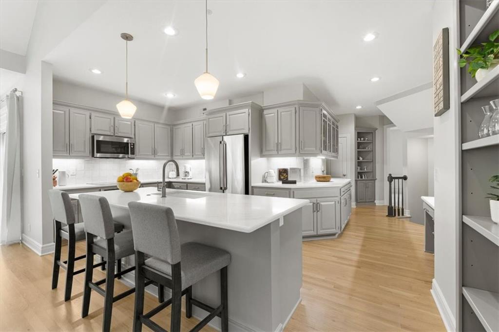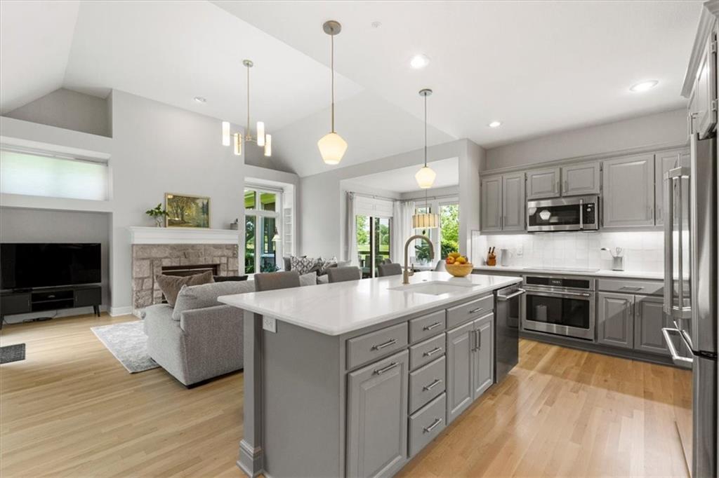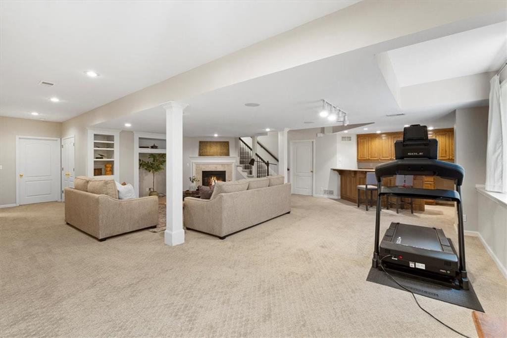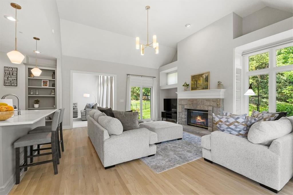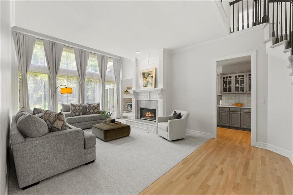 Welcome to this beautifully updated 5-bedroom, 4.1-bathroom home in the highly desirable Lionsgate community. This spacious 1.5-story residence is filled with natural light, highlighted by dramatic floor-to-ceiling windows in the great room that showcase peaceful lake views. Entertain with ease in the open-concept kitchen featuring high-end appliances, gorgeous quartz countertops, abundant cabinetry, and a generous walk-in pantry. The breakfast room and large screened-in porch both offer the perfect backdrop for morning coffee or evening relaxation with scenic views of the lake. The main-level primary suite is a spa-like retreat with an oversized tiled shower, luxurious quartz finishes, and a spacious walk-in closet. Upstairs, you'll find three generously sized bedrooms surrounding a large loft, ideal for a study zone, playroom, or additional TV area. The finished lower level offers a large recreation space complete with a cozy fireplace, wet bar, fifth bedroom, full bath, and an incredible bonus room perfect for a home gym or theater setup. Located in one of the area's premier neighborhoods with access to top-tier amenities, this home offers the perfect blend of luxury, comfort, and functionality.