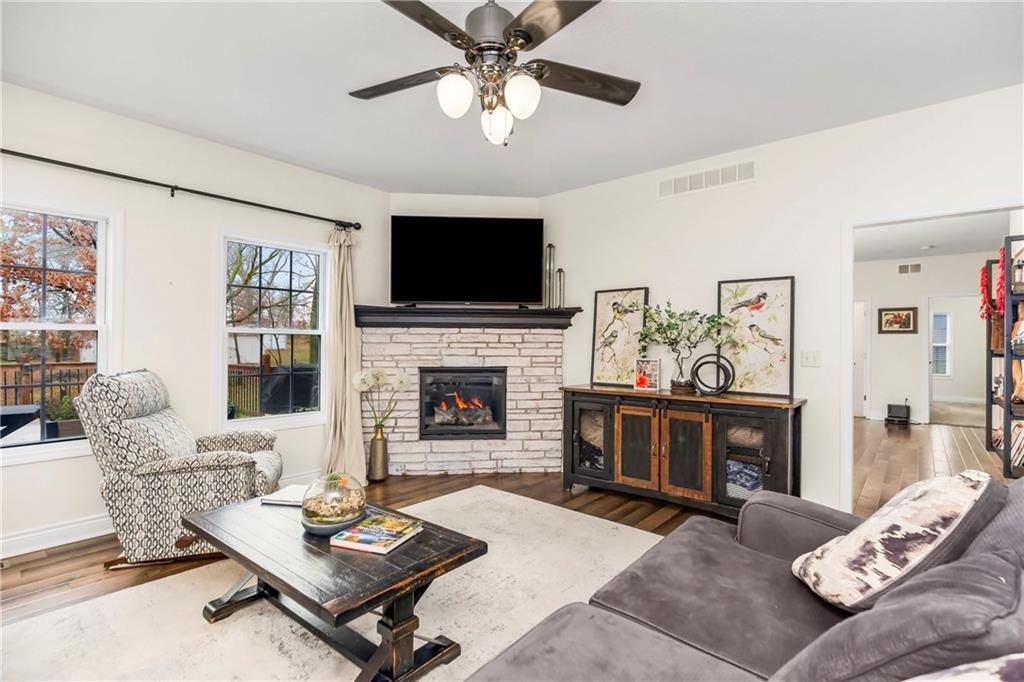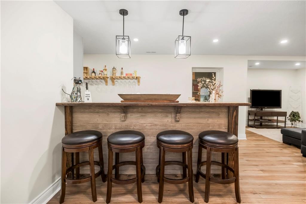 WELCOME HOME to this beautiful reverse 1.5-story home in Liberty, MO. With all-new flooring, fresh paint throughout, and thoughtful upgrades on every level, this home offers comfort, character, and exceptional livability. Step inside to a warm and inviting entryway that immediately reveals the home's spacious and well-defined layout. On the main level, you'll find a formal dining room and a cozy living room, creating a welcoming central gathering space. The left main-level wing includes the primary suite with its own private bath, a second bedroom with a full bath, and the laundry room. The right main-level ring offers the kitchen, walk-in pantry, an eat-in breakfast area, and a conveniently located half bath. Just off the kitchen, you'll find two additional bedrooms and a full bathroom. The walkout lower level is an entertainer's dream! Step into a spacious recreation area with a full bar, wine cellar, pool table, and a relaxing family room. The lower level continues with a 5th true bedroom, 4th full bathroom, and a 6th non-conforming bedroom located in the storage area where it could act as an additional room for guests, workout room, or even office. Additionally, you find a secret door that leads to a charming she-shed adding a fun and unique touch you won't find in other homes. With its generous layout, multiple functional living zones, and numerous updates throughout, this home is truly move-in ready and meticulously maintained. A rare find in Liberty, offering space, character, and upgrades at every turn.