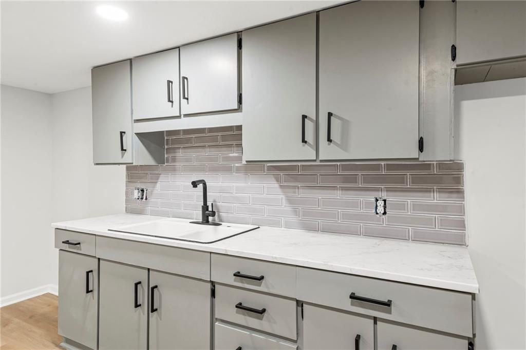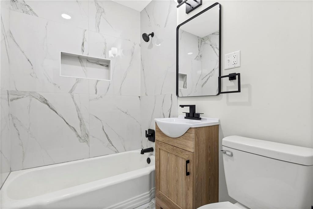 Welcome to your fully updated modern ranch—bright, open, and completely move-in ready. This beautifully refreshed home features 4 bedrooms (the master is an ensuite), 3 full bathrooms, and a fully finished lower level. Step inside to an airy main floor with new interior paint, large picture windows, and a stunning floor-to-ceiling brick fireplace with a sleek natural-wood mantel. The open kitchen shines with brand new cabinets, granite counters, stainless steel appliances, modern lighting, and a sleek subway-tile backsplash. The dining area opens to the backyard through double glass doors—perfect for indoor/outdoor living. Downstairs, the fully finished lower level offers a huge second living space with a second fireplace, new flooring, a convenient wet bar/kitchenette, a large bedroom, and an updated full bath—ideal for guests, an office, or a private suite. Outside has a fully fenced in backyard perfect for pets. Don't miss out!