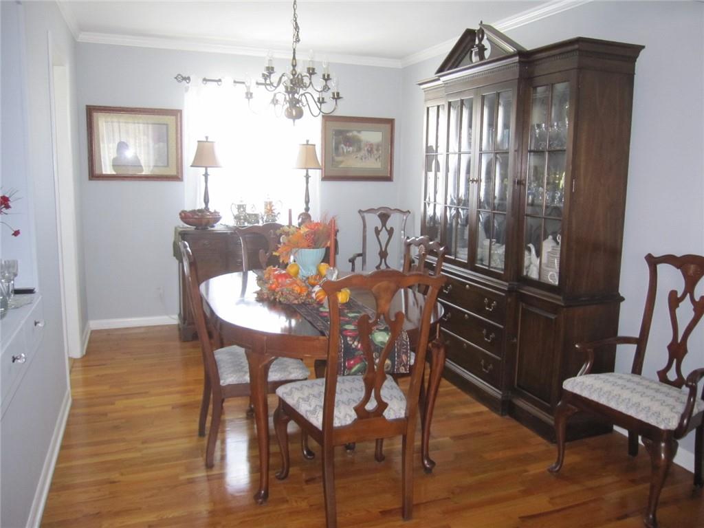 Sitting on a corner lot of a quiet dead end street, this beautifully decorated home is move-in ready. There are amazing hardwood floors throughout, and a wood-burning fireplace with a mantel. There is a formal dining room adjacent to the eat-in Kitchen which features granite counters, stainless appliances: Refrigerator, microwave, and gas range that stay. Washer/dryer, water softener also included. Large closets, tons of storage, and a finished walk-out basement onto the patio. Large deck off kitchen. Large yard sits on over 1/3 of an acre. In addition, the home has maintenance free siding, wrapped soffits and thermal windows. Don't miss out on this charming home!