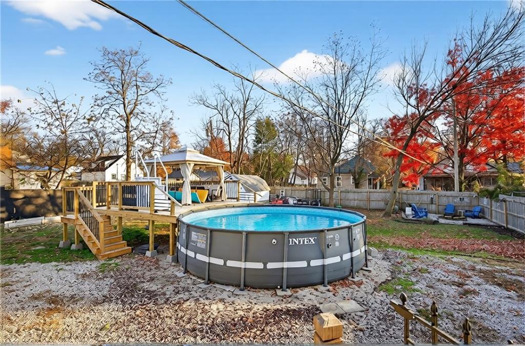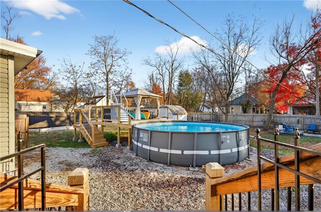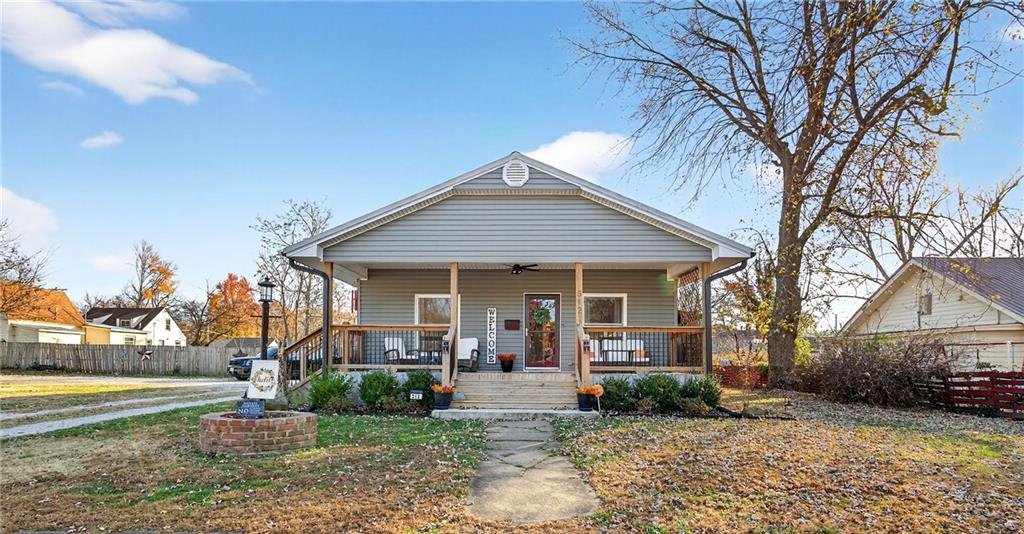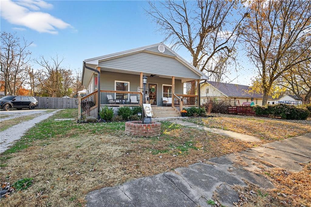 As you approach this beautiful bungalow style home, immediately you'll feel welcomed entering the large covered front porch with outdoor seating. The list of impressive qualities of this home is long, having been completely remodeled from top to bottom w/new electric, heat & air, gutters & downspouts, vinyl siding, thermal windows, flooring & much more, using the best in quality, design & energy efficiency. The open layout between the living room & kitchen allows for ease of entertaining. You'll absolutely love the kitchen! Featuring luxury vinyl plank flooring, new stainless appliances, custom painted cabinetry/pantries, cooking island w/built in flat cooktop & butcher block counters throughout. The modern hanging light over the cooking island & coffee bar is the perfect touch to this country inspired kitchen. Each bedroom in the home has a modern slider barn-type door, carpet & ceiling fans/lighting. The primary bedroom with ensuite full bath is spacious and comfortable, featuring a 13x8 walk in closet, made with space for a home office, nursery or other use. The full ensuite bath has ship lap walls, modern sink & vanity giving the room a sleek look. You won't lack for storage space in this home, as the new walk in laundry room has storage galore with double pantry cabinets. A concrete floor (cellar type) 1/2 basement provides additional storage & shelter use, during spring storm season. The outside of the home is as impressive as the inside w/year around interest & updates. Enjoy the attached, covered, back porch with night lighting, retractable screen door, & space for outdoor dining. For summer fun, a 20' above ground pool w/a large deck & pergola was installed in 2025. If you love to garden, raised garden beds are established for fresh produce to enjoy for months to come. While cool weather is upon us, spend your evenings at the cozy firepit seating area, making smores & relax after a long day under the stars. The work has been done. What a great investment!
