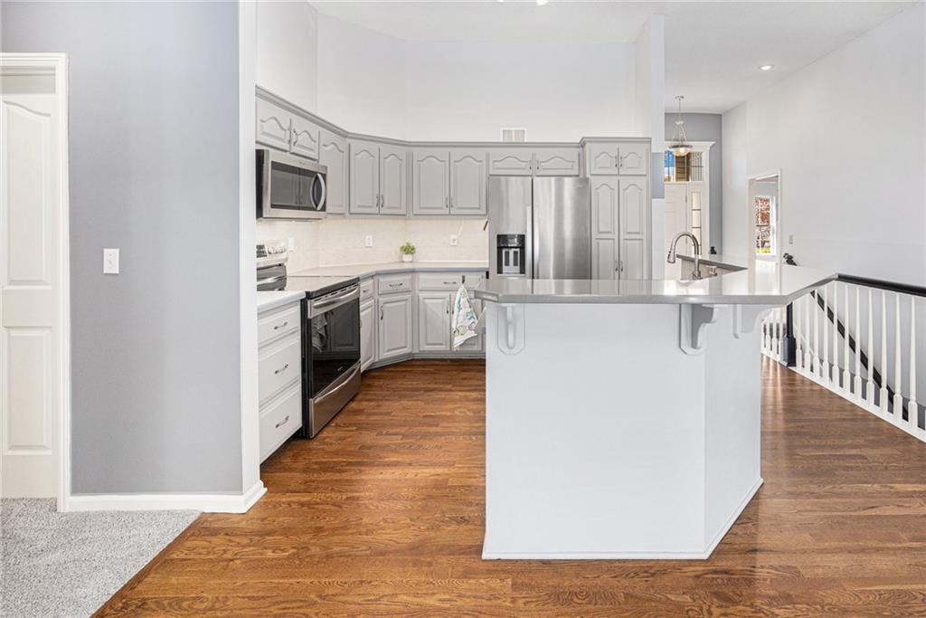 Welcome to this beautifully maintained 3-bedroom, 2-bathroom ranch nestled in the highly sought-after Platte City School District. This turnkey home features a bright and updated kitchen with stainless steel appliances, painted cabinetry, and ample counter space—perfect for everyday cooking or hosting family and friends. The main level offers refinished hardwood floors and new, plush carpet, creating a warm and inviting atmosphere. A spacious Great room with large windows brings in natural light and offers serene views of the mature trees surrounding the property. Cozy up by the fireplace or enjoy the flexibility of the bonus room, ideal for a formal dining space, home office, playroom, or personal library. Step outside onto the Large deck, perfectly positioned to overlook the peaceful, tree-lined lot—an ideal spot for morning coffee or evening relaxation. A walk-out, unfinished basement provides exceptional versatility—ideal for storage now and perfectly positioned for a future custom finish, complete with bathroom stub-in. With main-level bedrooms, thoughtful updates, newer a/c & roof and a quiet setting, this home is truly move-in ready. Easy access to Line Creek Trail: over 8 miles of paved trails through the woods and waterfalls of suburban Platte County. Don’t miss your chance to make it yours! Buyers' Agent responsible for verifying all information, including but not limited to sq ft, schools, taxes, room count, HOA, etc.