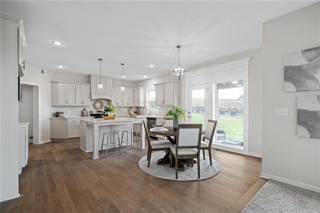 Levi II - Front Porch. This home is one of Prieb's most popular floor plans and features a large island in the kitchen and painted cabinets. There is a flex room on the main floor off the kitchen perfect for a home office with a full bathroom located close by. A stone fireplace in the great room and open floor plan are favorite features of this home. The primary bedroom has a huge primary bathroom with double vanities and granite countertops, separate shower and tub, and large walk-in closet. The laundry room is conveniently located next to the primary closet. The 3 secondary bedrooms upstairs are all spacious and have direct access to a bathroom. Home could close in 45 days or less.
