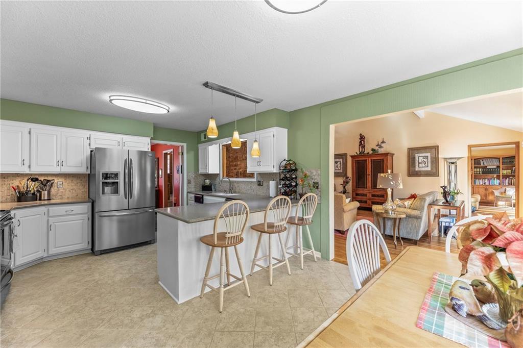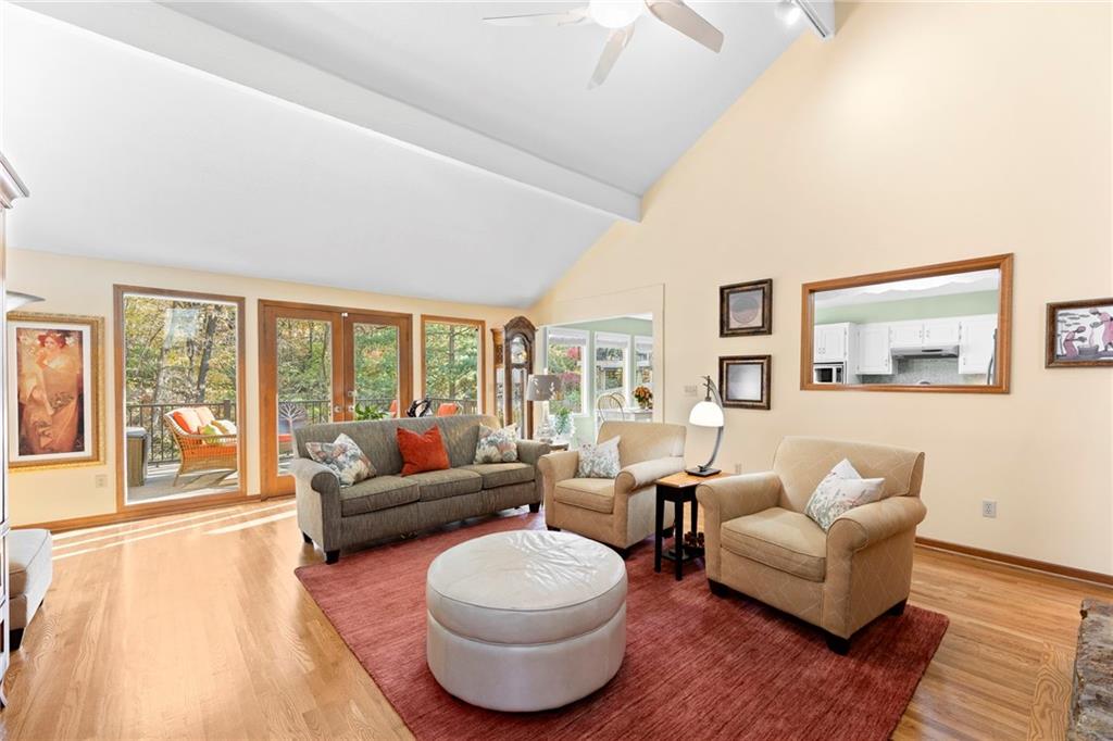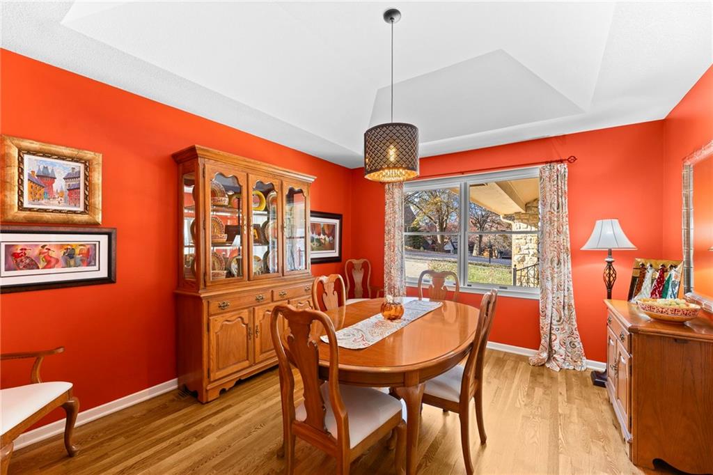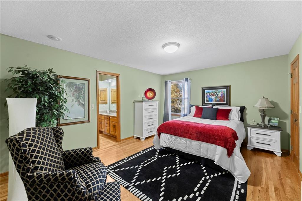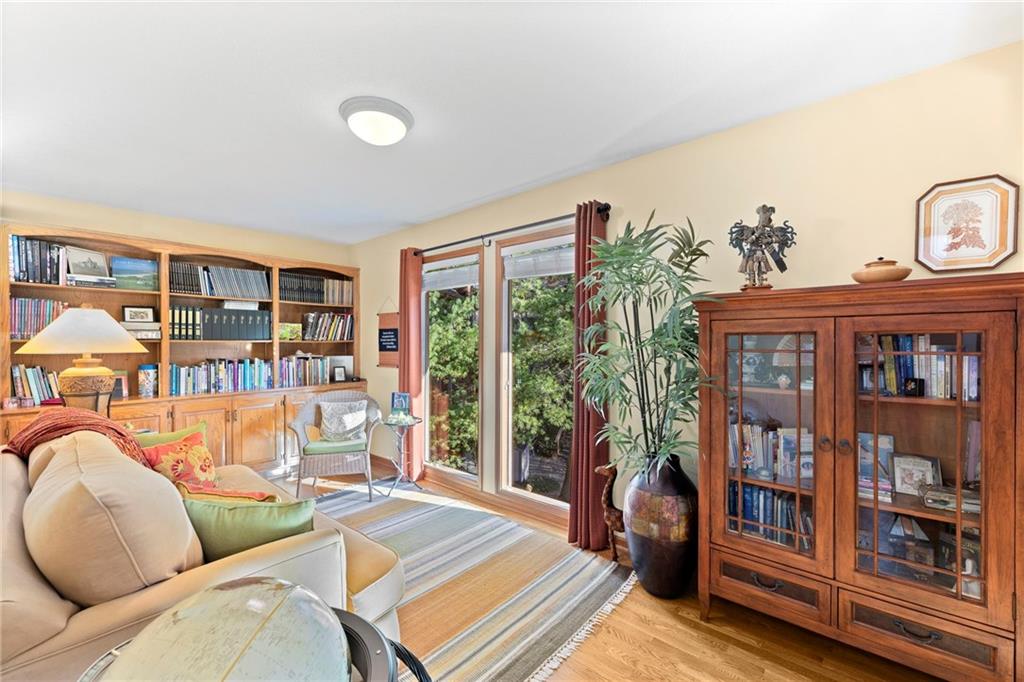 PRAIRIE LODGE ELEGANCE with luxury upgrades and prime Kansas City location. Architecturally unique home on a private, picturesque dead end street in prized Claymont Estates has the perfect blend of rustic charm and modern upgrades. From the moment you arrive, the impressive stone and stucco exterior, circle drive with portico parking, and exquisite plantings set a warm and inviting tone. The only other homes you see are all unique and prestigious but you are only minutes from the heart of Kansas City, the airport and the new Morton Salt entertainment venue in Riverside. And there is NO earnings tax in Gladstone! Soaring vaulted ceilings and a massive stone fireplace anchor the open living area, complimented by a dramatic window wall that fills the space with light. Gleaming oak floors flow throughout, while built-ins provide both character and storage. Enjoy your coffee and paper in the library with floor to ceiling windows overlooking the peaceful garden. Ascend the floating staircase to a serene master suite with a steam shower, heated floors, and an expansive walk-in closet. As a mater of fact, every bedroom has a walk-in closet. The second upstairs bedroom is 19X12. Two more ample sized bedrooms are located on the ground floor. Need even more bedrooms? Configuring them in the light, airy finished basement would be easy and there is an unfinished room at the base of the steps already roughed-in for a bath. Step outside the basement family room, through the new Anderson doors to the stamped concrete patio. Then to the backyard oasis, professionally curated by a Master Gardener, boasting lush landscaping and tranquil privacy. The new $35,000 composite deck with electric canopy on the main living room level will welcome all of your guests to enjoy the view also. There is also a backyard door out of the laundry so that area can double as space for plants, has a dog bathing shower pan, and enough cabinetry for event staging. Zoned heating, 1-yr-old roof.