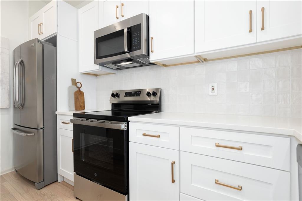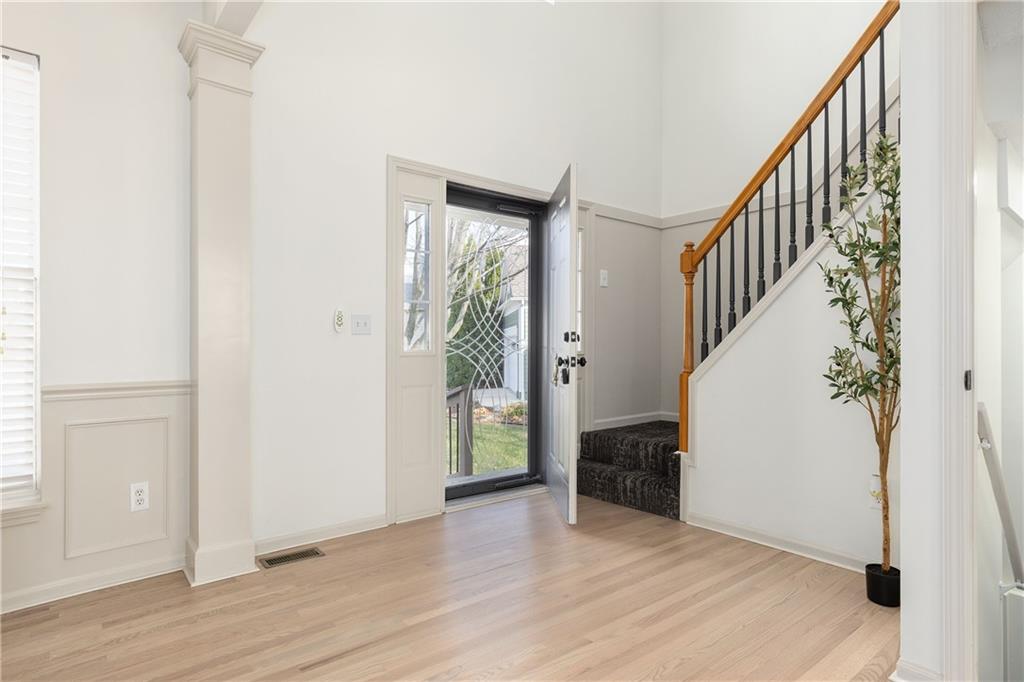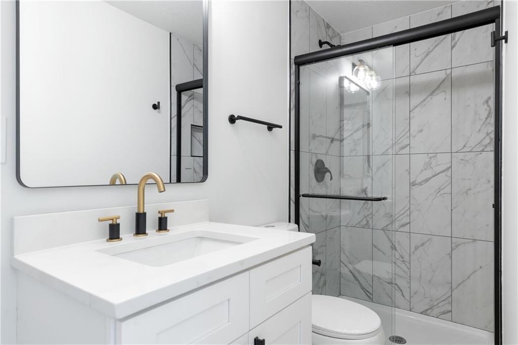 Stunning remodel in Woodland Creek. This 2 story sits at the end of the cul-de-sac, walk-out basement and backs to green space! Sprinkler system. new kitchen cabinets, quartz counter tops. added hardwood floors, 3 brand new full baths and a half bath. Lots of great natural lighting. Enjoy Fall on the new deck overlooking the trees. New exterior and Interior paint, new carpet and finished basement. This home has it all. Minutes from Heritage Park and shops. Olathe School District.