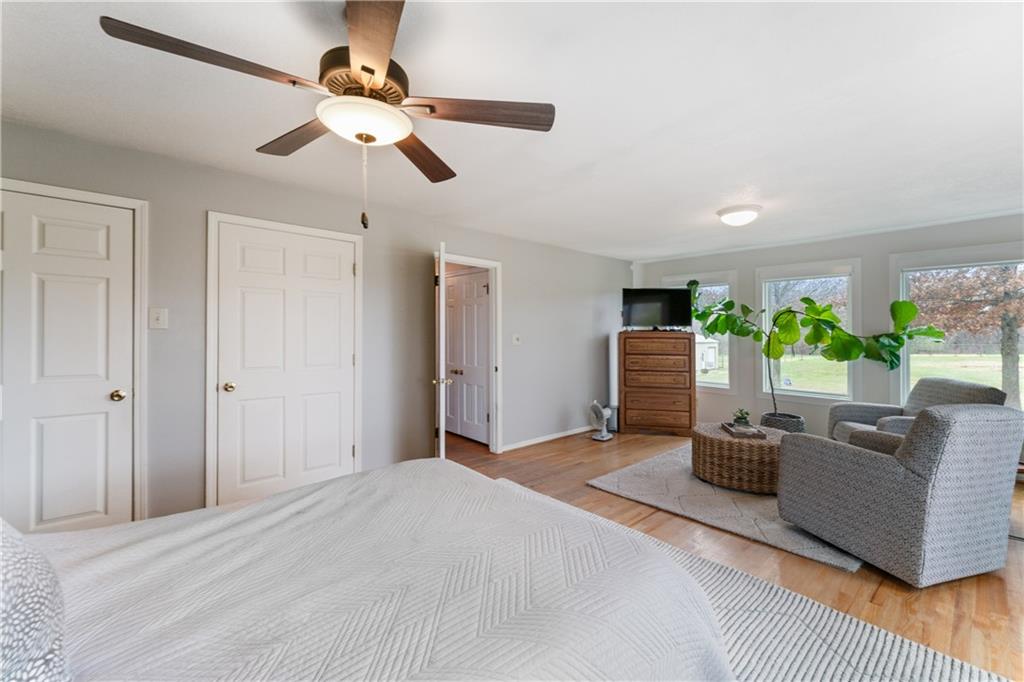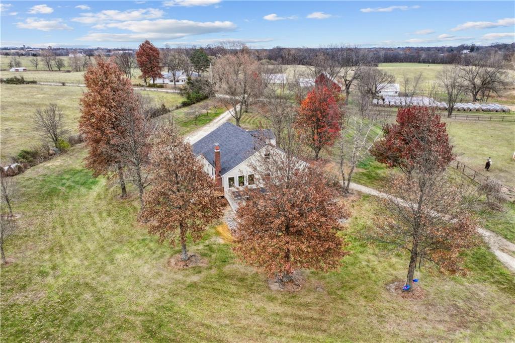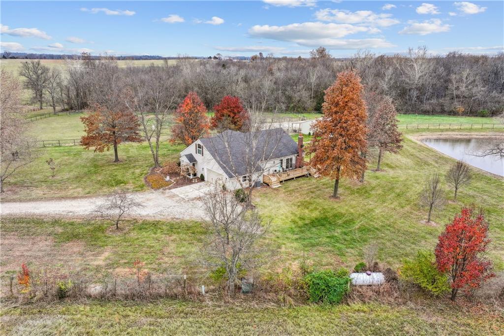 Just minutes from Overland Park and Louisburg, this 20-acre retreat offers unmatched privacy, incredible views, and a perfect blend of woods, pasture, and water. With ten acres of mature timber, ten acres of open pasture, a stocked, manicured pond, and Poney Creek running the full length of the property, it is the ideal blend of beauty and function. Horse ready and fully set up, the property includes horse safe fencing, cross fencing, a heated automatic waterer, three stalls with an attached run-in shed, a tack and storage room, plus water and electric in the barn. The home offers more than 3,100 square feet of comfortable, thoughtfully designed living space. Large windows and a brand-new deck capture sweeping views and daily wildlife. Inside, the great room is perfect for gatherings, and the kitchen is built for entertaining. Key updates give serious peace of mind. The home features 20 new thermal windows, a new sliding door, new gutters with guards, new composite siding with a 50-year transferable warranty, a one-year-old HVAC system, a one-year-old water heater, and a 5-year-old, 30-year roof. Follow the long private driveway to a property that feels secluded, peaceful, and truly special. This is a rare opportunity to live the outdoor lifestyle you want while staying close to the conveniences you need.