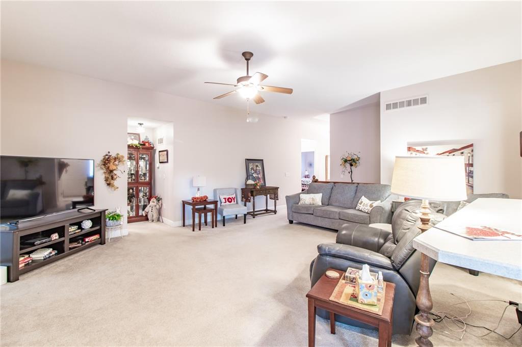 This well-maintained ranch home, built in 2005 by its original owner, offers a perfect blend of comfort and convenience. With 3 spacious bedrooms and 3 full bathrooms, this home is ideal for both living and entertaining. The open floor plan is complemented by new flooring installed in 2020, providing a fresh and modern feel throughout. The interior was freshly painted in 2018, adding to the home's move-in readiness. All appliances are included, ensuring a seamless transition into your new home. The kitchen features a nearly-new microwave (less than a year old) and a stove that was replaced in 2023. The home also has a built-in sprinkler system, keeping your lawn looking pristine year-round, while maintenance services, including lawn mowing, leaf removal, and snow clearing, are all provided for added convenience. A two-car garage offers plenty of storage and parking space, while the roof and gutters were replaced in 2012, providing peace of mind. With the added benefit of maintenance-free living, this home is perfect for anyone looking for ease and comfort in a quiet and well-kept neighborhood close to a variety of restaurants and entertainment. This home is a must see!