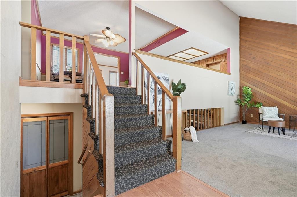 Welcome to this well-cared-for two-owner home in the sought-after White Ridge Farm neighborhood in Lees Summit! You're just minutes from stores and restaurants, a short drive to the charm and energy of historic Downtown Lee’s Summit and have quick highway access for easy commuting. Even better, you’re only two blocks from the extremely popular Rock Island Trail, perfect for walking, running, and biking! Inside, this home gives you lots of extras you won’t find in similar floor plans. Upstairs, you’ll love the bonus room off the kitchen—featuring beautiful hardwood floors perfect for an office space or den. Downstairs, the family room and extended rec room offers the perfect second living area, playroom, or hangout space. The kitchen features granite countertops, an extra large island perfect for serving a large gathering or storing all your essentials. Enjoy vaulted ceilings in the family room and primary bedroom, a cozy stone fireplace in the lower level, and a deep garage with space for storage or hobbies. Heating and cooling systems are only 4 years old and the home sits on a solid foundation–so all that’s left is for you to bring your own cosmetic updates to make it truly yours!