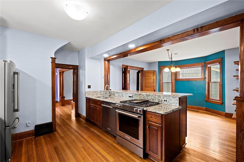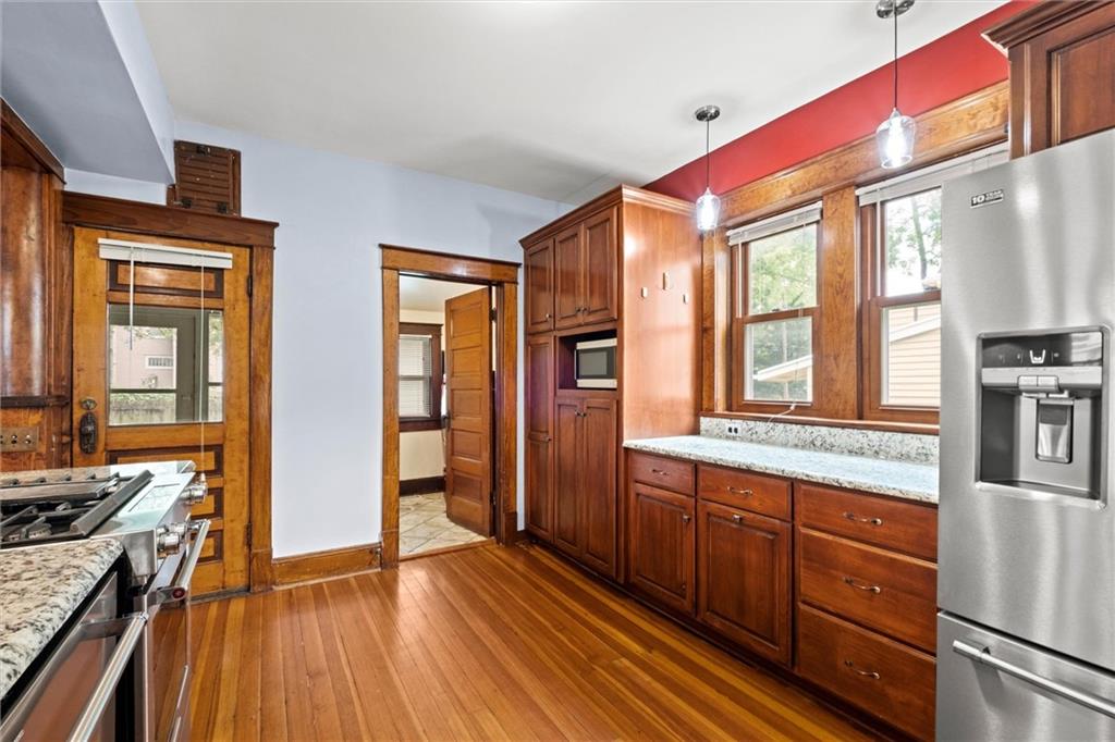 Open House: Saturday, November 22nd!! 1-3pm! Step into timeless charm with this spacious 1910 Four-Square Victorian. Flooded with natural light, the home showcases four stunning stained-glass windows, hardwood floors throughout, and beautifully preserved original woodwork. The remodeled kitchen features an open-concept layout with granite countertops, stainless steel appliances, and the perfect blend of modern convenience and historic character. A wood-burning stove anchors the living area, while the marble-accented half bath adds a touch of elegance. The expansive third-floor room offers flexible use as a bedroom, playroom, or office. Outside, enjoy the screened-in back porch or unwind on the welcoming covered front porch—ideal spaces for morning coffee or evening relaxation.