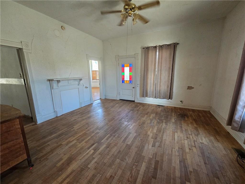 Charming 1900 bungalow on an oversized Lot. Step into the character and charm of this 3-bedroom, 1-bath bungalow, built in 1900 and filled with timeless details. From the moment you arrive, the cozy front porch welcomes you into a home boasting 9-foot ceilings, hardwood floors, and a beautiful bay window that fills the living space with natural light. The inviting living room has the potential for a great fireplace with classic touch—perfect for cozy evenings. Situated on a very large lot, the property offers a fully fenced backyard, dedicated garden area, and a metal shed for storage or hobbies. A basement walk-up, back porch, and ample off-street parking provide both convenience and functionality. There's also plenty of space for a detached garage, offering great potential for future expansion. With its new roof and great bones, this home is ready for someone to bring it back to its full glory. With a little TLC, it can become a truly stunning property once again. Don’t miss the opportunity to make this charming bungalow your own!
