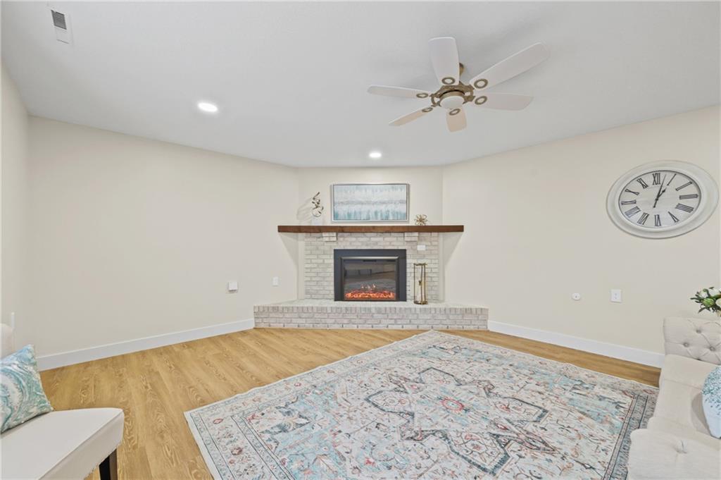 Coming Soon!!!Professional Photos will be added soon!!!Welcome to stress-free living in the 55+ Foxwood Springs community in Raymore, MO. This beautifully remodeled home features all-new LVP flooring, baseboard trim, lighting, textured ceilings, fresh paint, updated faucets, quartz countertops, window treatments, custom cabinets, and custom closet shelving. The spacious dining room includes a built-in buffet and cabinets, and a new home office with built-in desk overlooks a large window. The kitchen offers new stainless appliances, updated cabinets, new walk-in pantry, quartz counters, and backsplash. The living room includes a new electric fireplace with remote for year-round comfort. Popcorn ceilings removed, new doors, new landscaping, and more. Enjoy maintenance-provided living with HOA services that include 24-hour security, emergency response, lawn care, snow removal, trash, exterior and interior maintenance, and utilities (water/sewer). A one-time $3,000 access fee provides use of community amenities including indoor pool, fitness center, library, lounges, meeting rooms, billiards, shuffleboard, garden plots, greenhouse, picnic area, and on-site dining, with optional housekeeping and transportation services. Experience the perfect blend of independence and community—truly a wonderful place to call home.