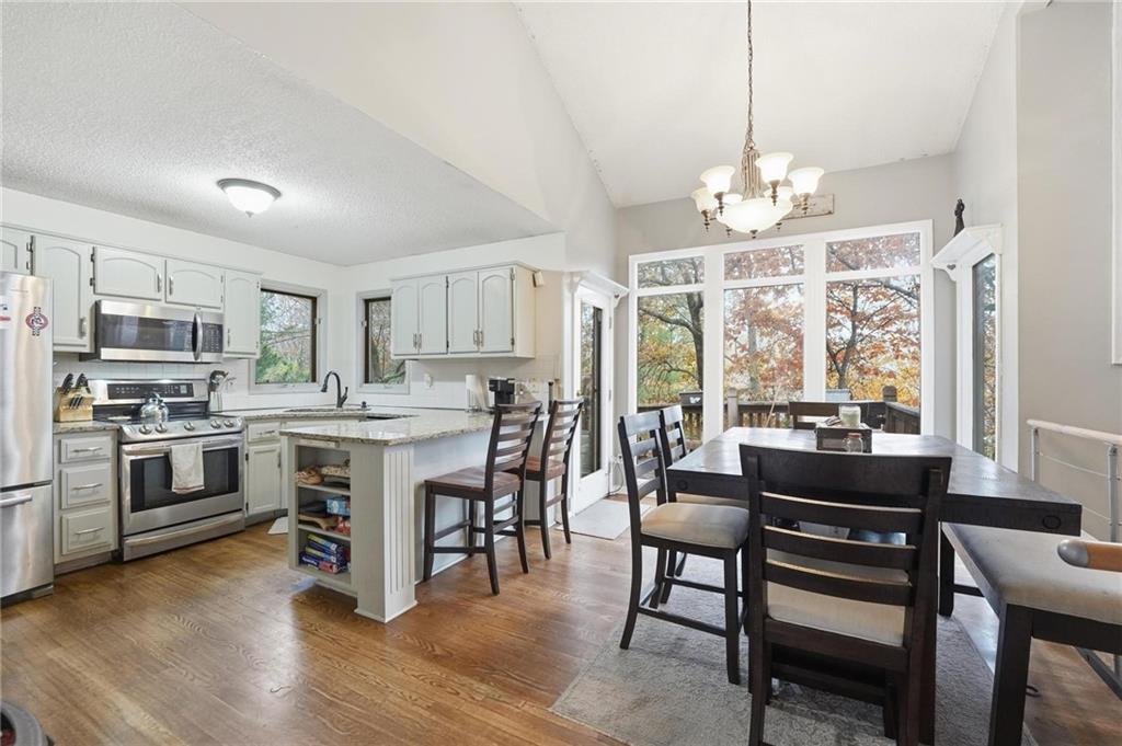 This cul-de-sac charmer brings space, privacy, and a layout that fits real life. The yard feels like your own little park with mature trees all around. Inside, the vaulted living room sets the tone with great natural light. The kitchen has granite counters, updated appliances, and LVP that continues into the bedrooms for a clean, cohesive look. The dining area opens to a deck that overlooks the trees, perfect for easy mornings and relaxed evenings. The primary suite has a roomy walk in closet, and the finished lower level gives you bonus hangout space with a walkout to that huge backyard. This home blends comfort with function in a location that feels tucked away yet close to everything.