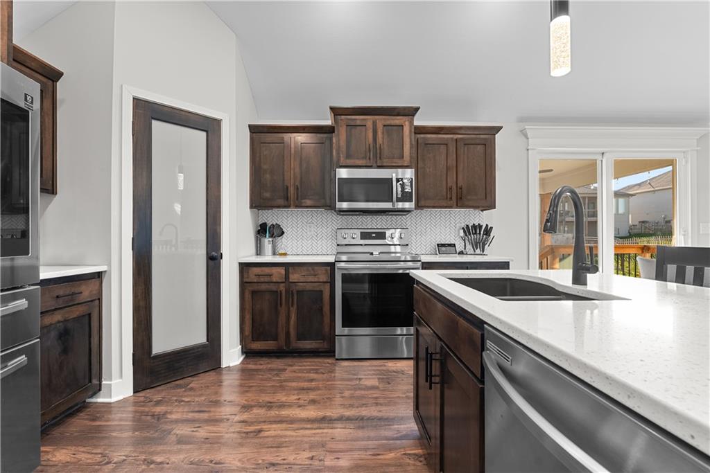 Beautiful, modern home in highly sought-after Rosewood Hills! Only a few years old and exceptionally well cared for, this property offers 5 true bedrooms, an extra-deep 3-car garage, and a bright, open floor plan with vaulted ceilings. The kitchen features a large island and walk-in pantry, with seamless flow into the living and dining areas. The primary suite is thoughtfully positioned on its own side of the home, providing added privacy from the additional main-level bedrooms. A main-floor laundry room adds everyday convenience. The finished lower level includes a true fifth bedroom and additional bedroom or flex space, plus access to the oversized garage. Outside, enjoy a fenced-in yard perfect for pets, play, and entertaining. Located in an energized neighborhood close to top-rated schools, this move-in-ready home checks every box!