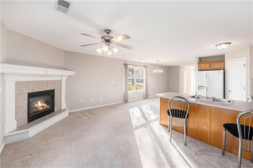 Location, location, and PRICE! Don't miss this fabulous, maintenance-provided 3-bedroom, 2.5-bath townhouse perfectly positioned on a desirable corner lot with a one-car garage. Step inside to a welcoming main floor featuring a convenient half bath and an open-concept kitchen, dining, and living room. The kitchen offers a walk-in pantry, bartop seating for four, and includes all appliances,dishwasher, stove, refrigerator, and microwave,that remain with the home at closing. The living room is light and inviting with neutral paint, a ceiling fan, gas fireplace, and a slider leading to the private patio, ideal for relaxing or entertaining. Upstairs, you'll find all three bedrooms. The spacious primary suite showcases a tray ceiling, new carpet, tray ceiling and ceiling fan. The ensuite bath offers both a jetted tub and a separate shower. Two additional bedrooms, a second full bathroom, and a dedicated laundry room (washer and dryer stay!) complete the upper level. Major updates add peace of mind, including a new roof, new hot water heater, and new A/C. Situated just off 152 Highway and North Oak, with quick access to 435, 169, and I-35, this home offers unbeatable convenience for commuting, shopping, dining, and more.