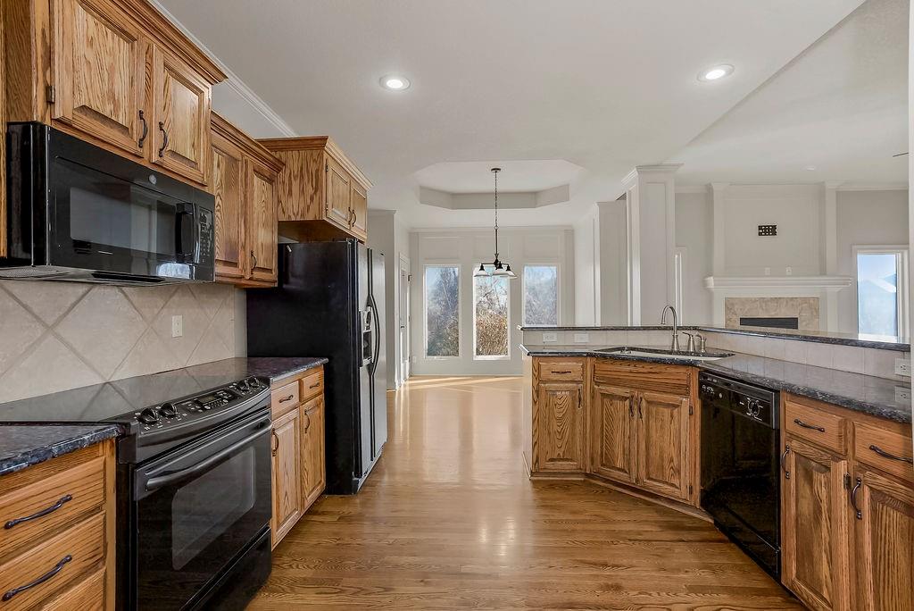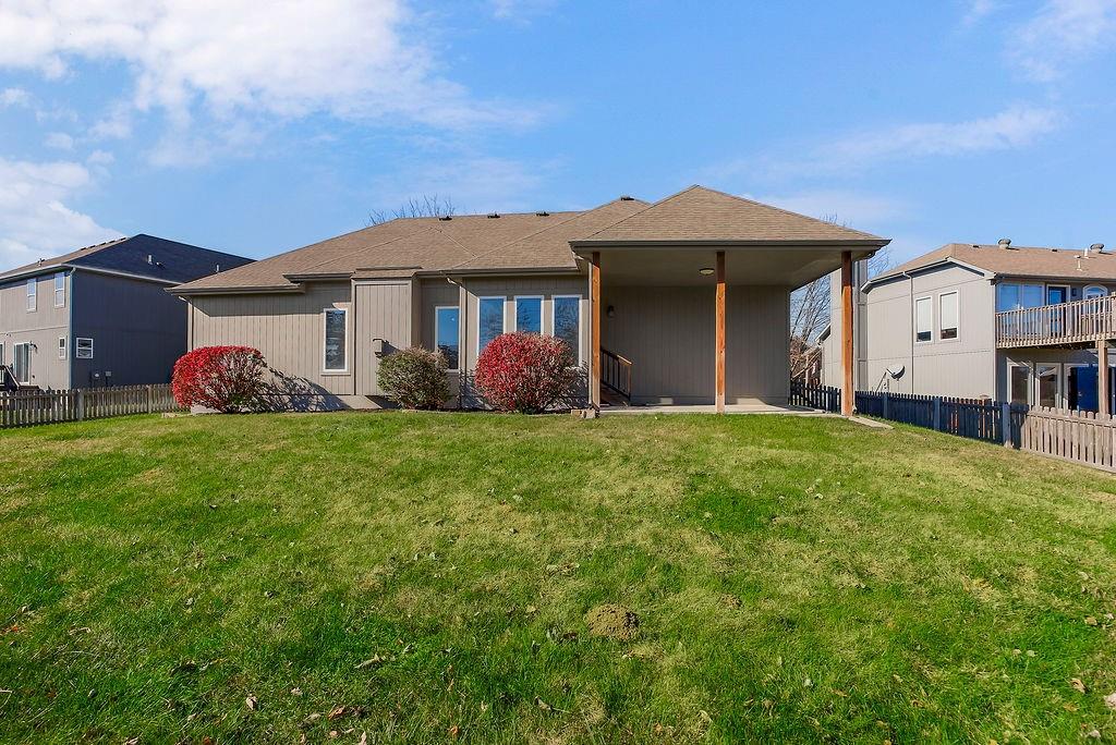 Welcome home to this spacious ranch-reverse in Blue Springs, thoughtfully designed with room to live, gather, and relax. Step inside to an inviting open floor plan featuring a bright Great Room with a cozy fireplace, built-in speakers, and abundant natural light. The kitchen opens beautifully to the main living area, offering a large center island with breakfast bar, walk-in pantry, and granite counters—plus upgraded trim and gleaming hardwoods that carry through the kitchen and dining space. The breakfast area, complete with a stylish tray ceiling, walks out to a covered patio perfect for morning coffee or evening unwinding. The primary suite is a true retreat with its vaulted ceiling and striking Palladian window. The spa-inspired bath includes elegant columns, a whirlpool tub, tiled walk-in shower, and a generous walk-in closet. The main level also includes two additional spacious bedrooms, a full hall bath, and a convenient laundry room. Downstairs, the finished lower level expands your living options with a large rec room (also with built-in speakers!), a full bath, and two more true bedrooms—ideal for guests, teens, or office space. You’ll also find plenty of storage, a brand-new water heater, AND a 2 year old A/C for peace of mind. Outside, enjoy a fully fenced backyard backing to beautiful, serene nature views. It’s the perfect blend of privacy and outdoor living! Dive into the perks of the HOA, including a sparkling pool, fun play area, and scenic neighborhood trails! Come see!