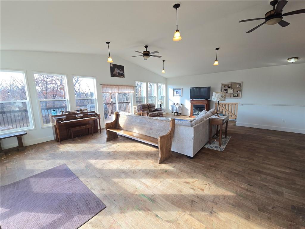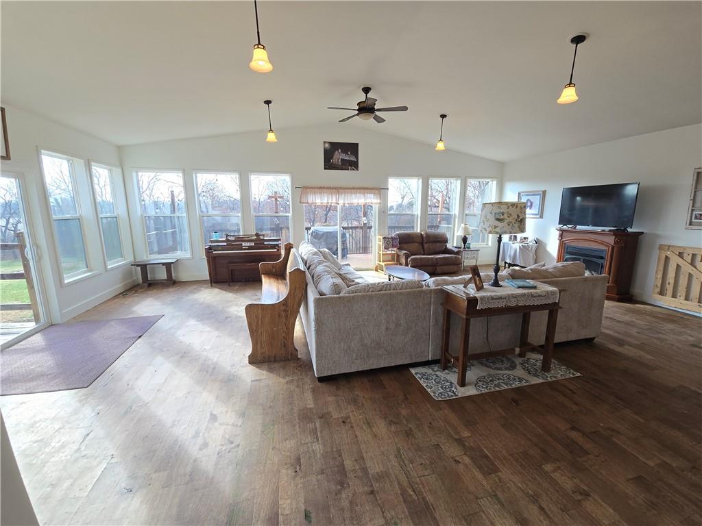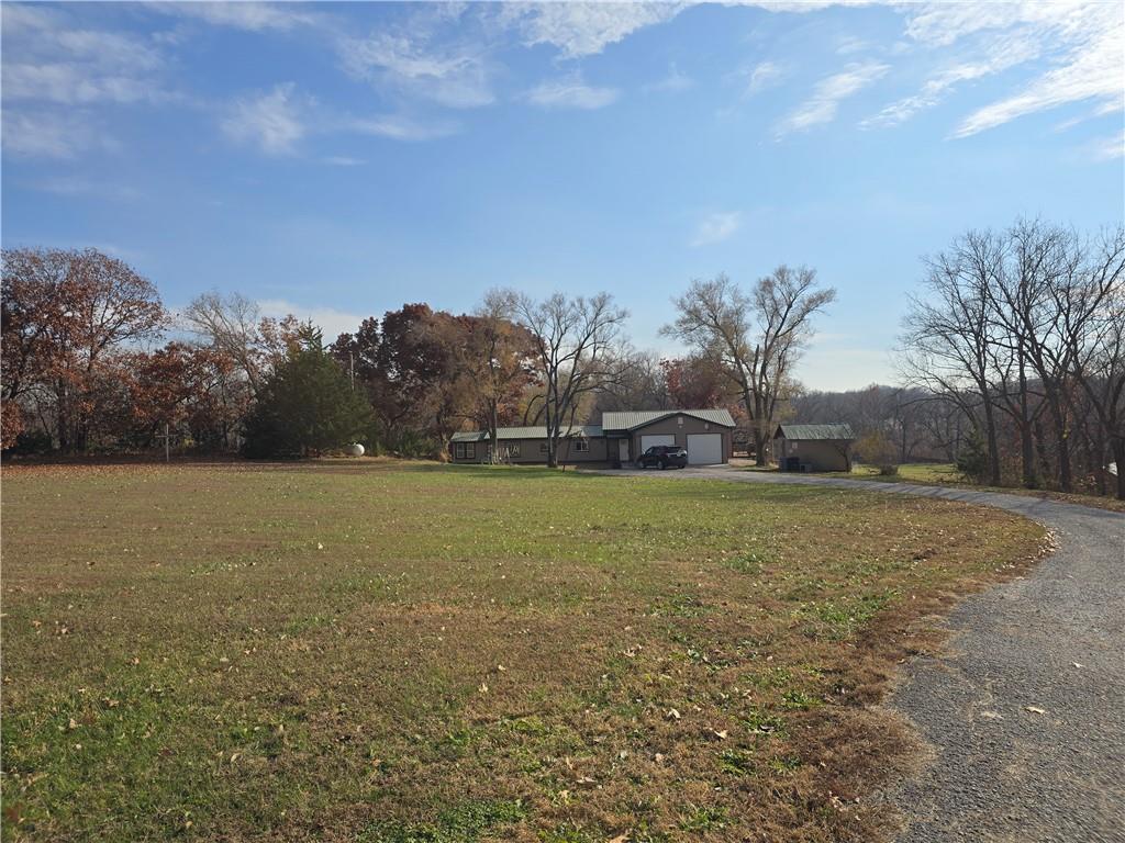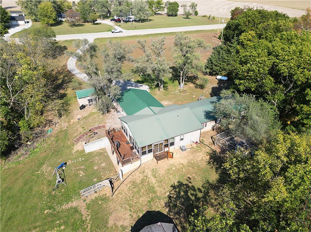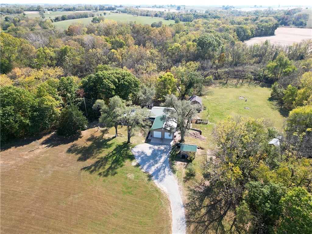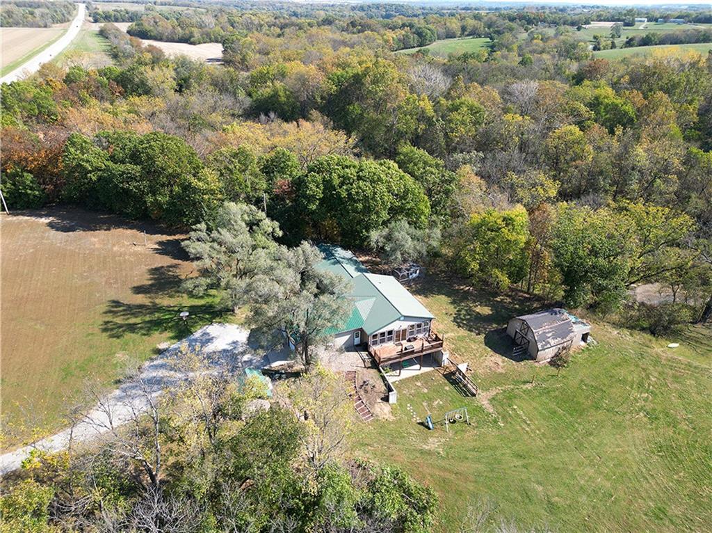 SCENIC COUNTRY VIEWS! Enjoy beautiful country views in this spacious 4-bedroom, 3-bath home. The open floor plan features large windows that let you admire the changing seasons, and a cozy fireplace perfect for fall and winter. The fully equipped kitchen offers ample cabinets and counter space, while the main floor laundry room provides a convenient folding area. There is a separate family room and deck for gatherings, plus an adorable playhouse-style nook under the stairs for kids. The walk-out basement opens to a patio, and the attached two-car garage includes extra workspace and two exterior doors. The property is bordered by a creek to the south, has several outbuildings, and offers ten acres for exploring and enjoying the outdoors.