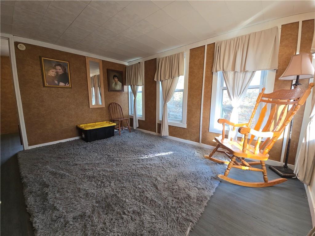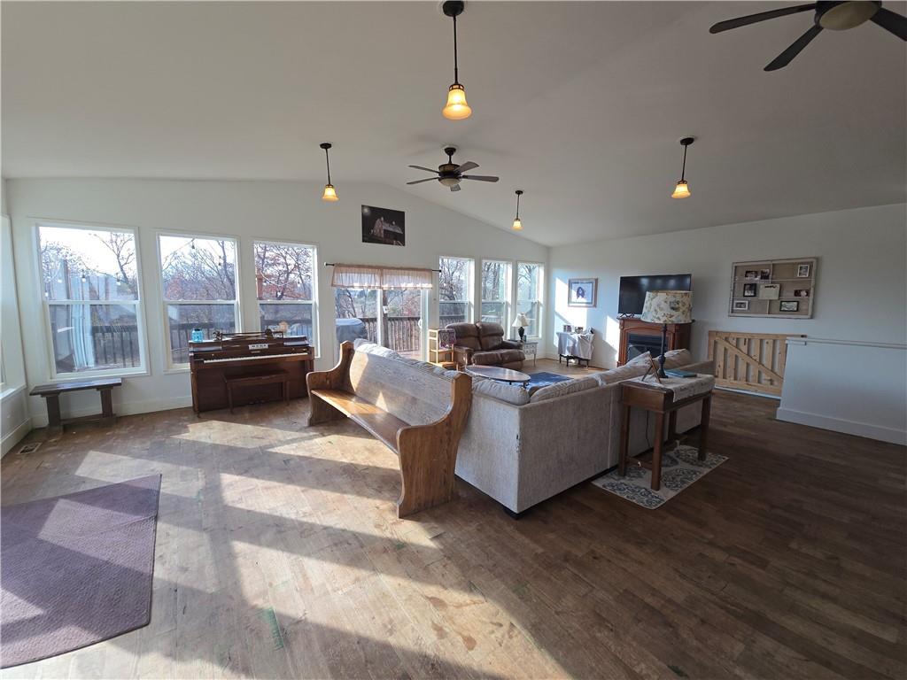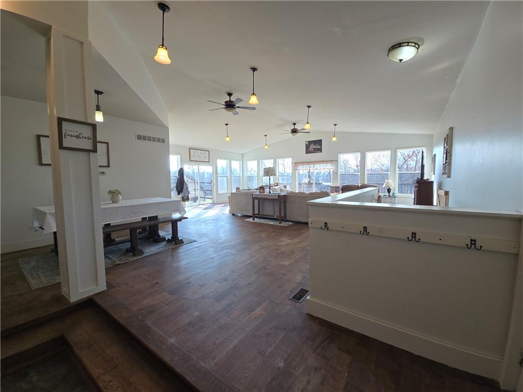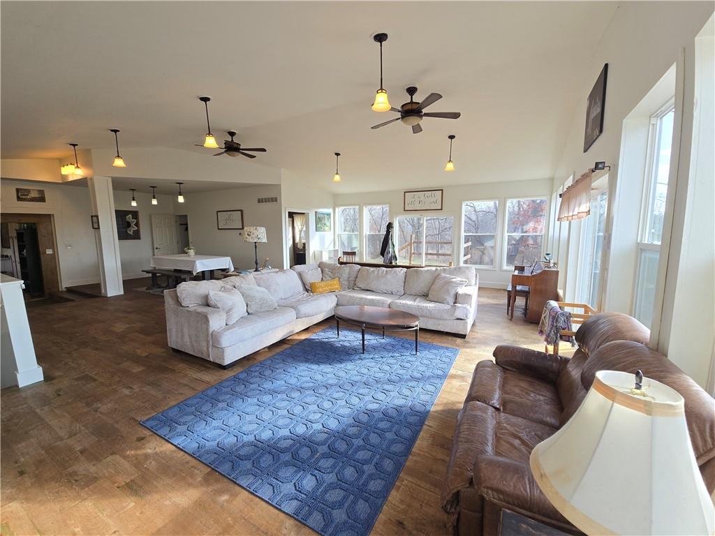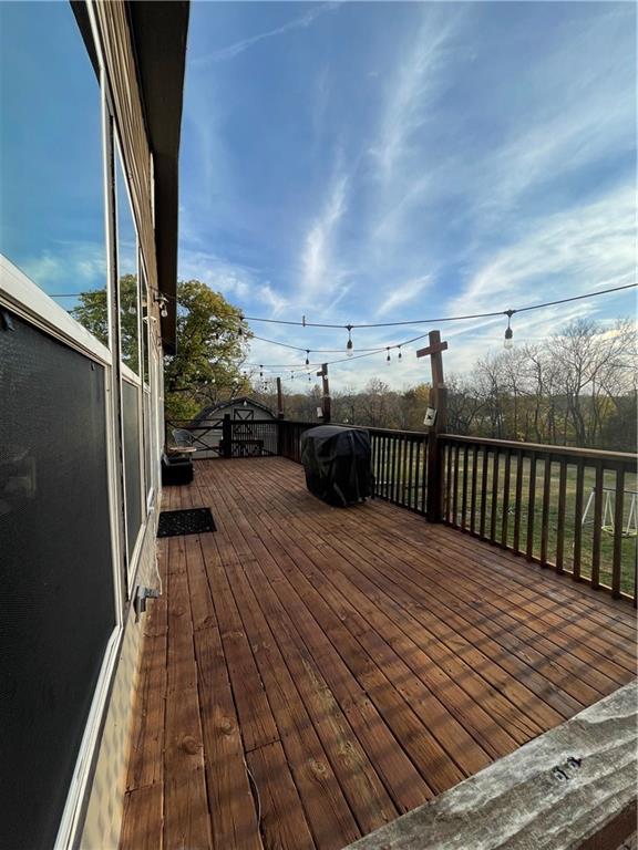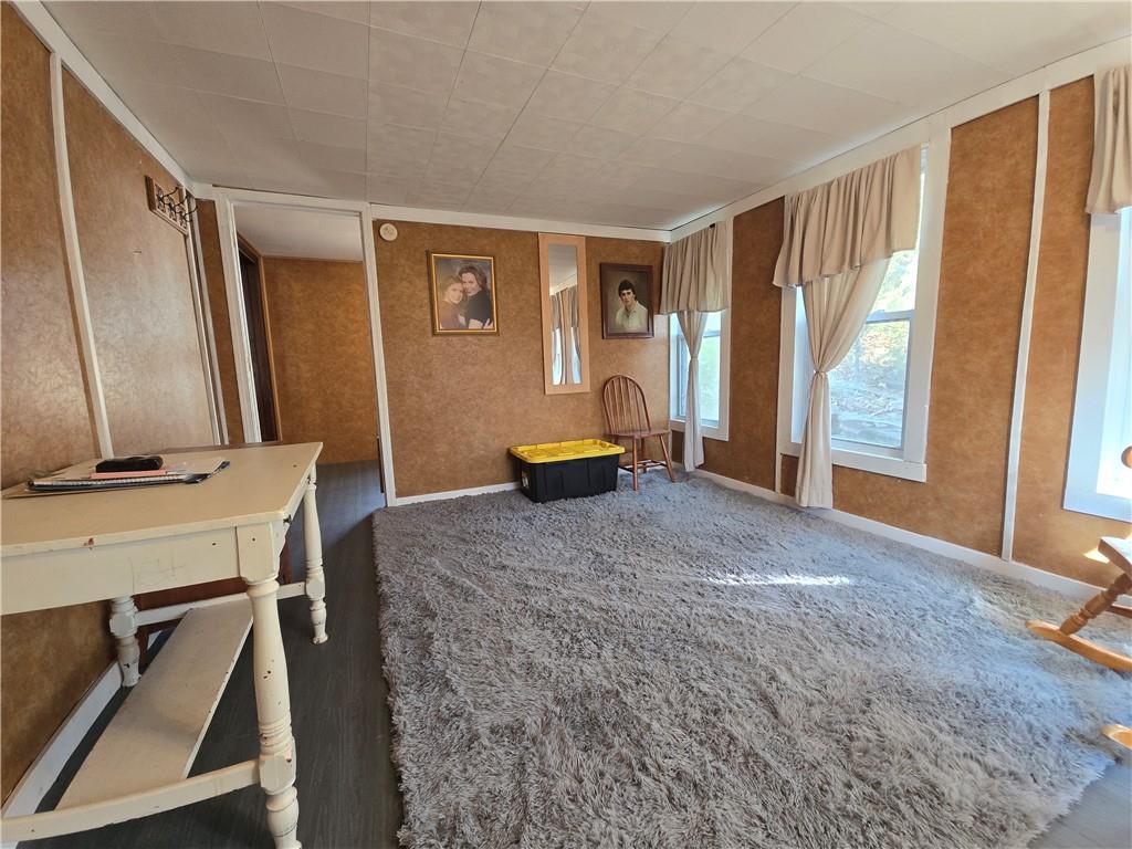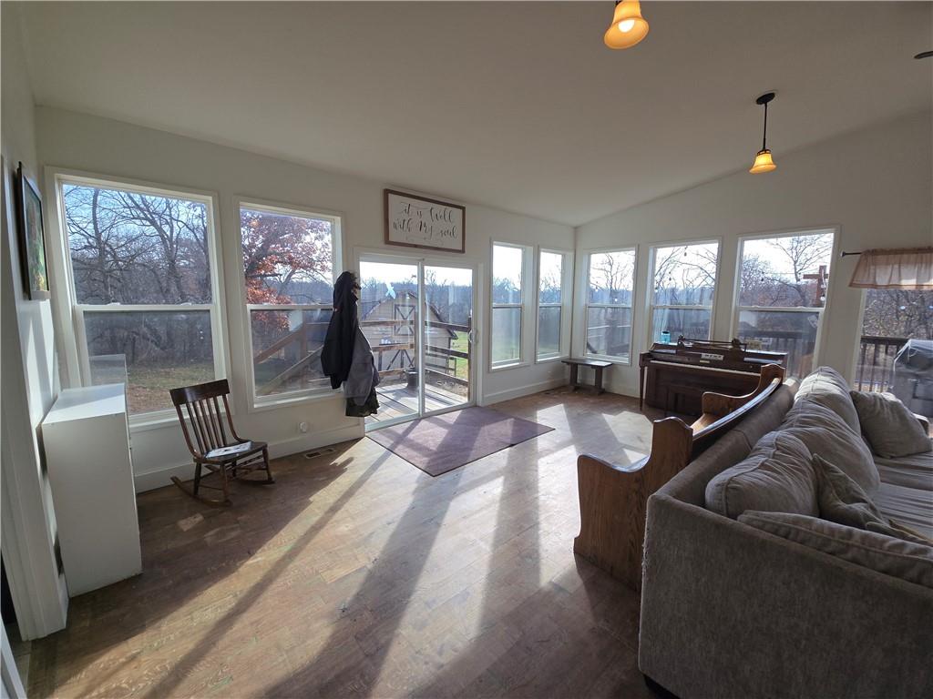 SCENIC COUNTRY VIEWS! Enjoy beautiful country views in this spacious 4-bedroom, 3-bath home. The open floor plan features large windows that let you admire the changing seasons, and a cozy fireplace perfect for fall and winter. The fully equipped kitchen offers ample cabinets and counter space, while the main floor laundry room provides a convenient folding area. There is a separate family room and deck for gatherings, plus an adorable playhouse-style nook under the stairs for kids. The walk-out basement opens to a patio, and the attached two-car garage includes extra workspace and two exterior doors. The property is bordered by a creek to the south, has several outbuildings, and offers ten acres for exploring and enjoying the outdoors.