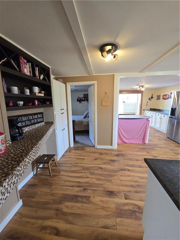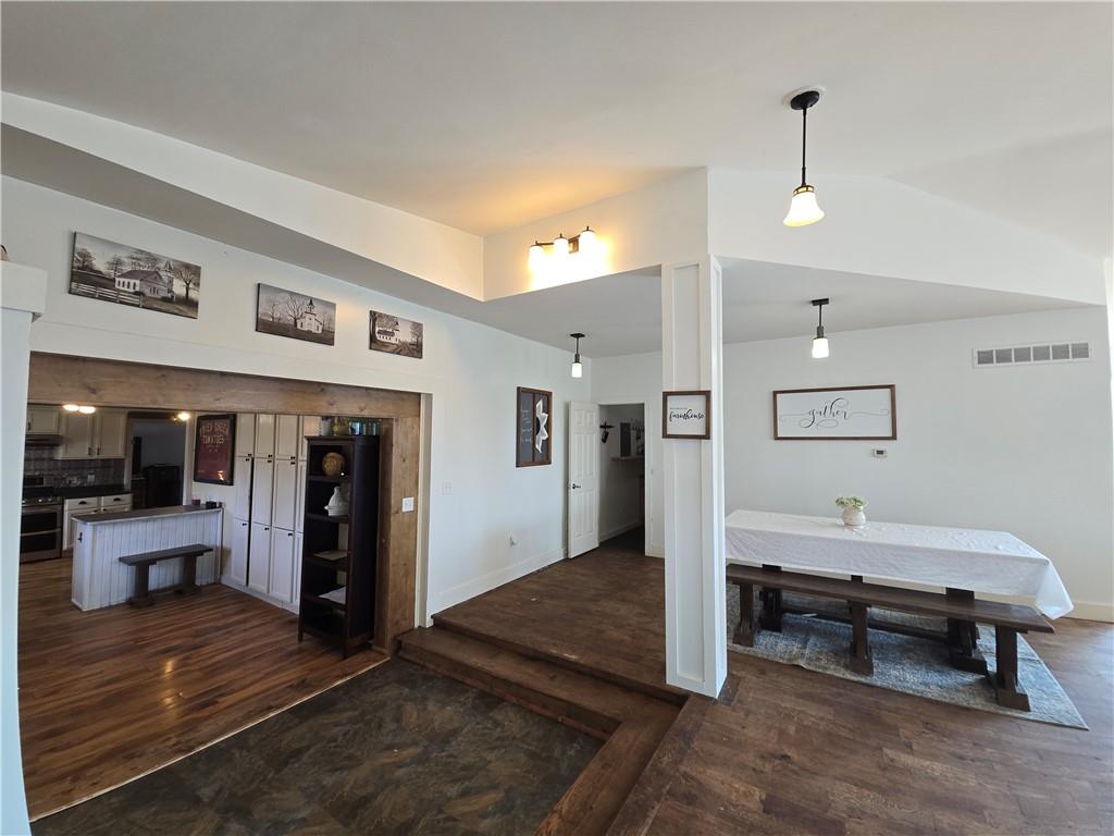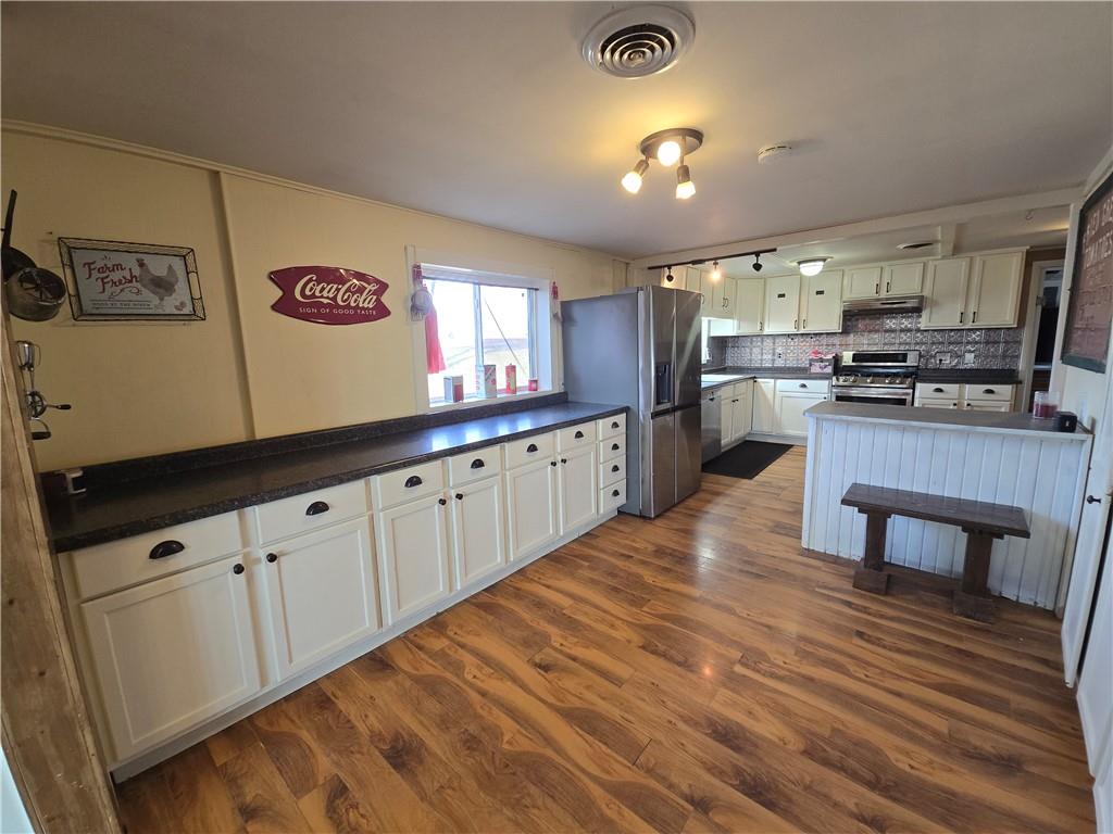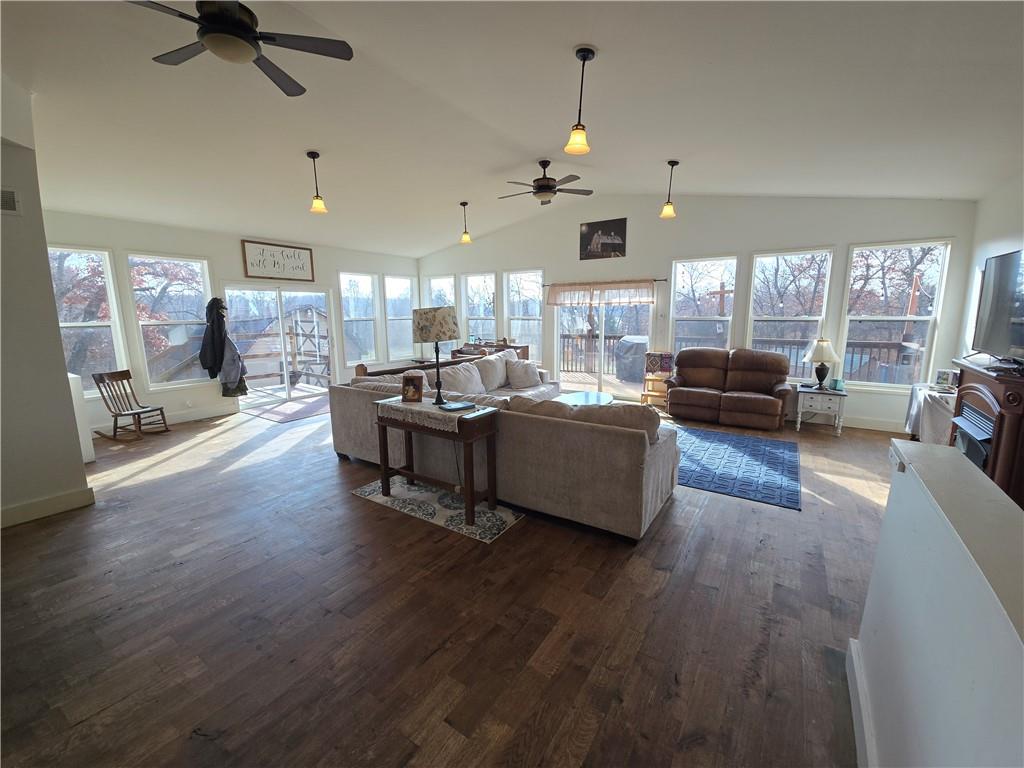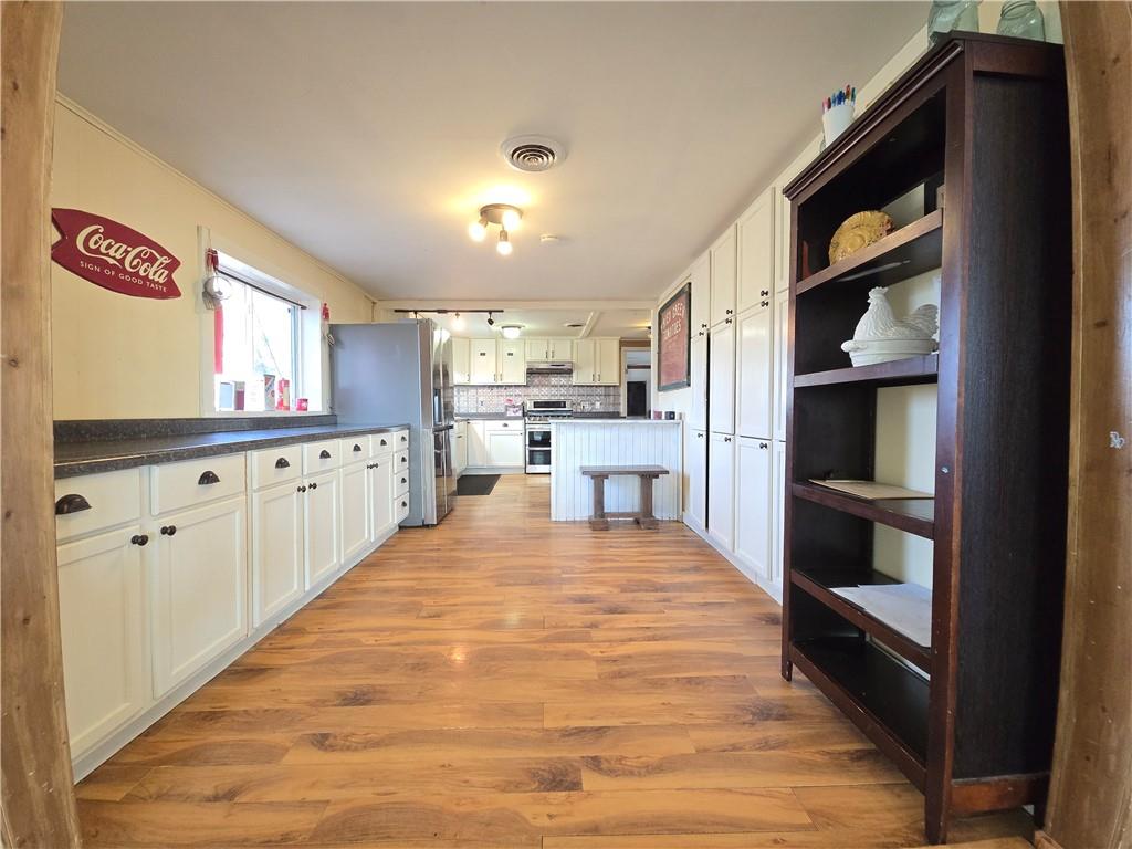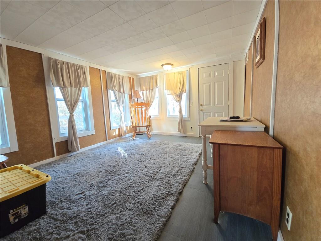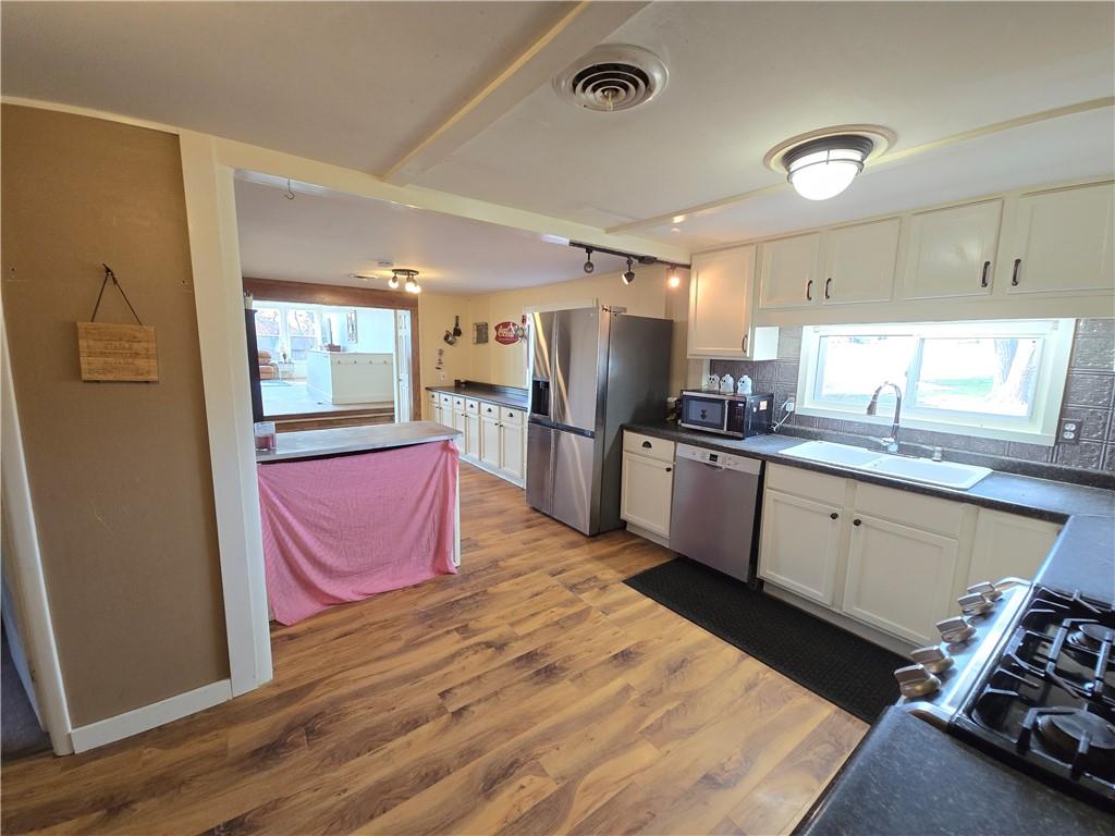 SCENIC COUNTRY VIEWS! Enjoy beautiful country views in this spacious 4-bedroom, 3-bath home. The open floor plan features large windows that let you admire the changing seasons, and a cozy fireplace perfect for fall and winter. The fully equipped kitchen offers ample cabinets and counter space, while the main floor laundry room provides a convenient folding area. There is a separate family room and deck for gatherings, plus an adorable playhouse-style nook under the stairs for kids. The walk-out basement opens to a patio, and the attached two-car garage includes extra workspace and two exterior doors. The property is bordered by a creek to the south, has several outbuildings, and offers ten acres for exploring and enjoying the outdoors.