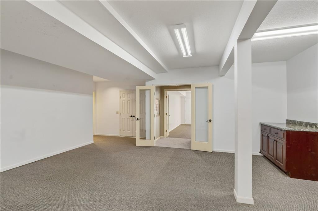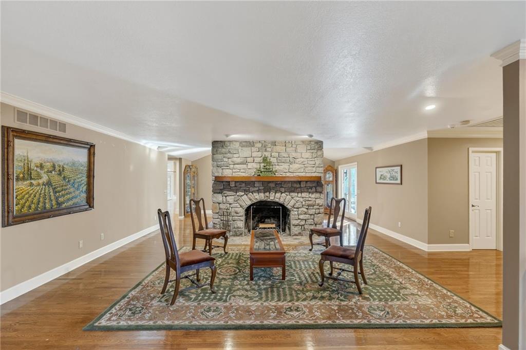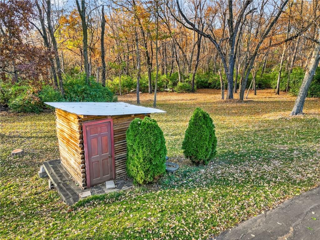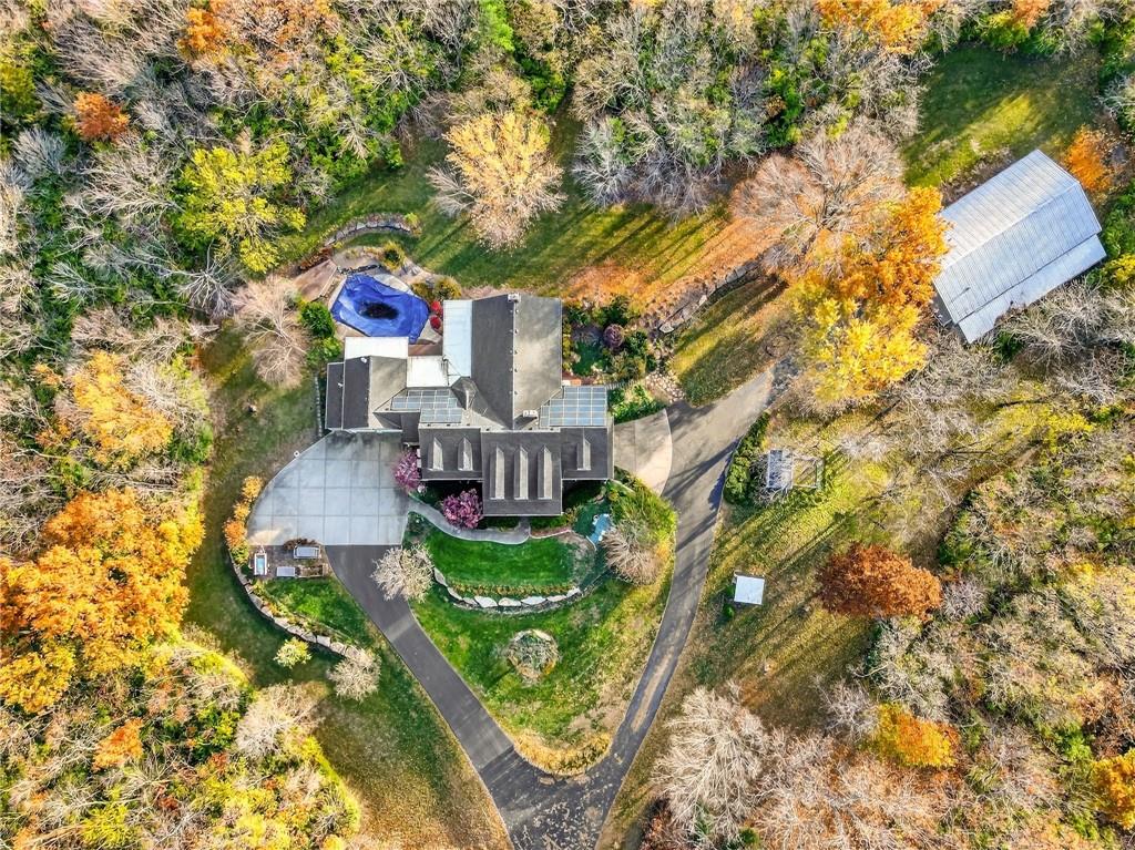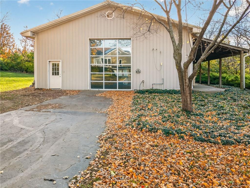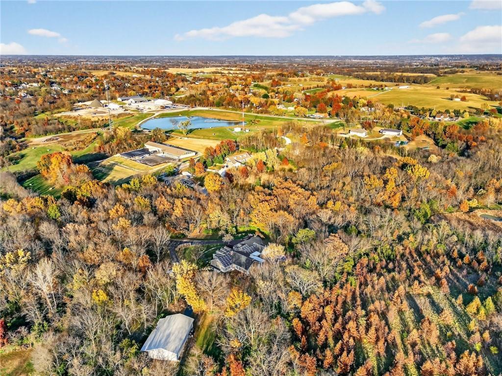 Secluded on a quiet road 10 miles from Liberty is 8 acres of mature wooded timber & tranquility. The homesite includes a true ranch, 7 car garage w/ inground pool, incredible 65x37 outbuilding w/ finished space ideal for an office/huge workout area and kitchen and bath. Driving through the front gates down the newly blacktopped, paved drive over the bridge that suspends a creek you happen on a humble ranch. New roofs on house and outbuilding along with new lightning rods provide the buyer with $80k + of upgraded components. The exterior has fantastic grounds filled with nature and solitude. At the main house, you are met with a floor to ceiling stone masonry fireplace w/ an oversized box. Oak wood floors throughout to 2 bedrooms & a bath on the south side and a 1000 sqft living area the size of a ballroom creates a sunny, one of a kind recreation room on the main level. This space provides family connection/togetherness on the main level. The master is oversized and has a bath with tile flooring and shower along with a large tub. The kitchen has granite countertops, stainless appliances including industrial Viking appliances along with a pantry. Downstairs is a perfect place for an apartment having a full kitchen, dining area and non conforming bedroom. It has 2 additional rooms that can be used as offices, bedrooms, hobby rooms, plus a 4th bedroom, etc. The true kicker is the $100K solar panels and battery backup, provide FREE electricity to the main house every month of the year. The outbuilding has an area for a kitchen and bath which enables this space to be the perfect place to have someone close, but not too close. A great shop for whatever your mind can imagine along with a finished space for an apartment, business, or workout area provides endless opportunities. Outdoor pool and outside kitchen provide automatic fun in the warm season.