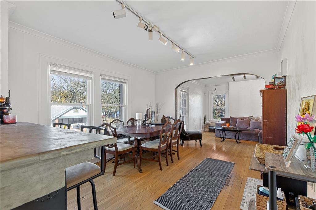 Come check out this beautiful multifamily home with TWO open concept kitchens, original charm, updated bathrooms, and optimal location near highways, public parks, the Davidson elementary school, and surrounded by friendly neighbors! This two story home is evenly split for a two bedroom one bathroom apartment on each floor with a two-car side entry garage and a LARGE storage area that could host the third unit! BONUS income potential! The basement is home to the laundry area shared by both tenants, a storage area, half bath, and a sauna. The back of each apartment is connected by a staircase that leads to the fully fenced backyard complete with a fire pit and lush grass. Charm is intact with both units showcasing the original doors, floors, woodwork! Upgrades include newer windows, kitchen layouts, kitchen floors, and fun features like concrete countertops and subway tile backsplash. MOVE RIGHT IN and obtain owner occupied financing with as little as 3% for your downpayment - or retain existing tenants. Up to you since both units have flexible month to month leases in place. Don't miss this opportunity to own a multifamily home in the heart of KC! A true slice of KC's history in the Lang Subdivision.