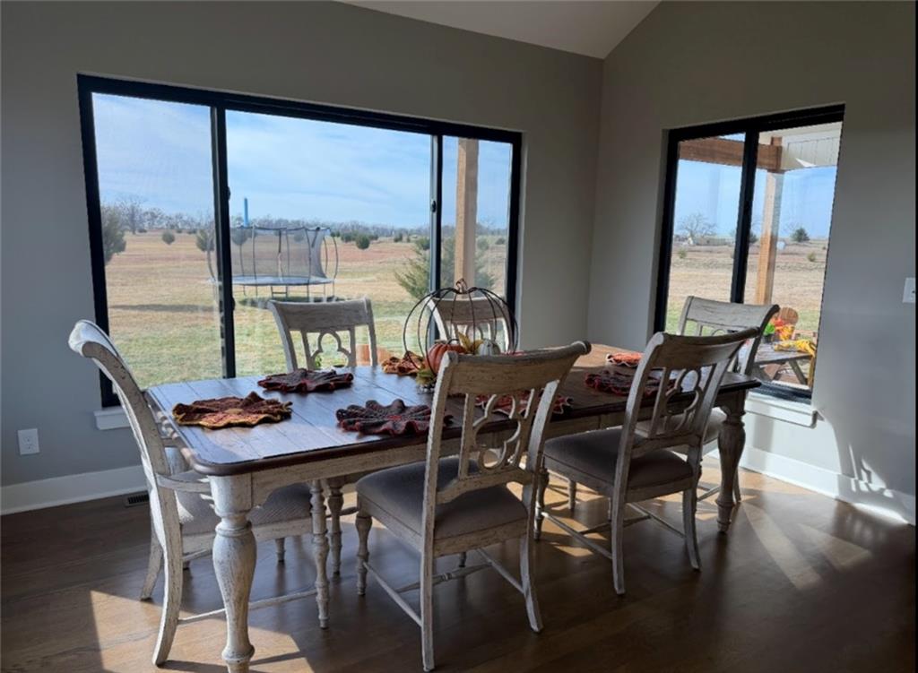 Your Dream Home Awaits! This gorgeously appointed 4 Bedroom 3 and 1/2 Bathroom Reverse Story 1.5 is better than NEW! Your Future Home offers an open concept main level with a grand foyer, second bedroom/office, Chefs Delight Kitchen, Dining Space, Great room, Primary suite, Laundry room, mud room and oversized garage. The Charming kitchen offers a HUGE walk-in Pantry, 6ft island with Quartz countertop, loads of storage, 36" Gas stove, and Painted Custom cabinetry. Your Great room offers a wood burning fireplace and double sliding doors that open to the covered porch to take in your country views. Enjoy retreating to your spacious primary suite where you can relax in your walk-in shower with custom tile. Your magnificent walk-in closet connects conveniently to the laundry room. Head down stairs to your sizable recreational room that connects your exercise room, bonus room, and 2 additional bedrooms joined by a Jack & Jill bathroom. Need storage? You've found it. The amount of storage this home offers is substantial. Enjoy the space your acreage offers for you to enjoy. Fish in your 1/3 acre pond, store your toys in the 40x60 shop/outbuilding with concrete & electricity or turn it into a barn for horses or other animals, start a large garden, your options are almost endless. Easy highway access. Only 14 minutes from Louisburg for shopping and restaurants, 8 minutes from Linn Valley Lakes, and 21 minutes La Cygnes Lake. Tour this home today before you miss out! Professional photos taken tomorrow.