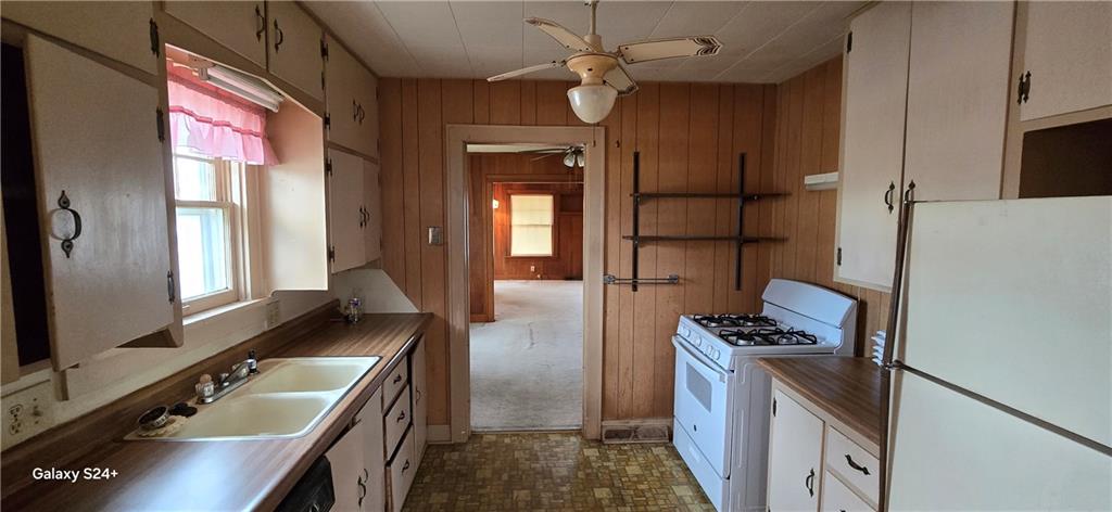 2 bedroom/1 bath home on a full basement* Covered front porch with a Handicap Accessible Ramp* Large living room area with built-in window bench* Bedrooms with walk-in closets* 2 year old roof* Some newer Triple-Pane windows* Appliances stay including a 1 year old gas stove* Home is on a corner lot with shed in backyard* Within walking distance of High School, Football Stadium, Sports Complex, Fitness Center with Swimming Pools and City Park* Inspections Welcomed...Selling "As Is".