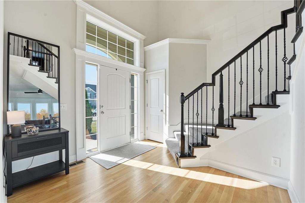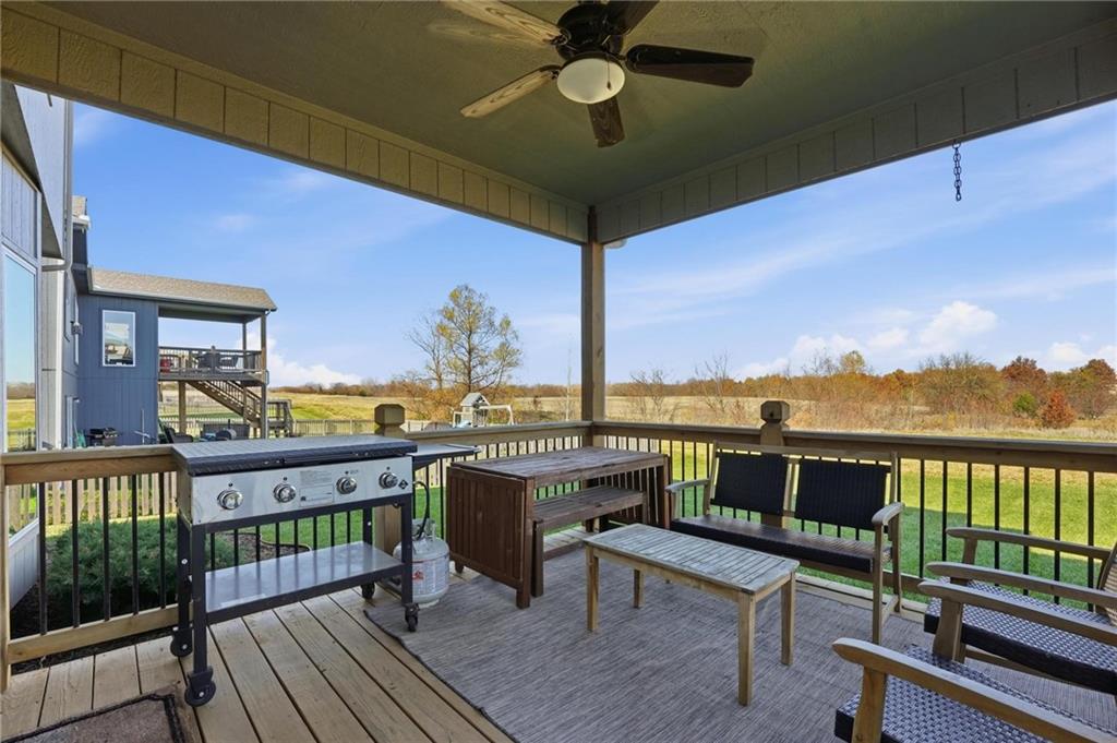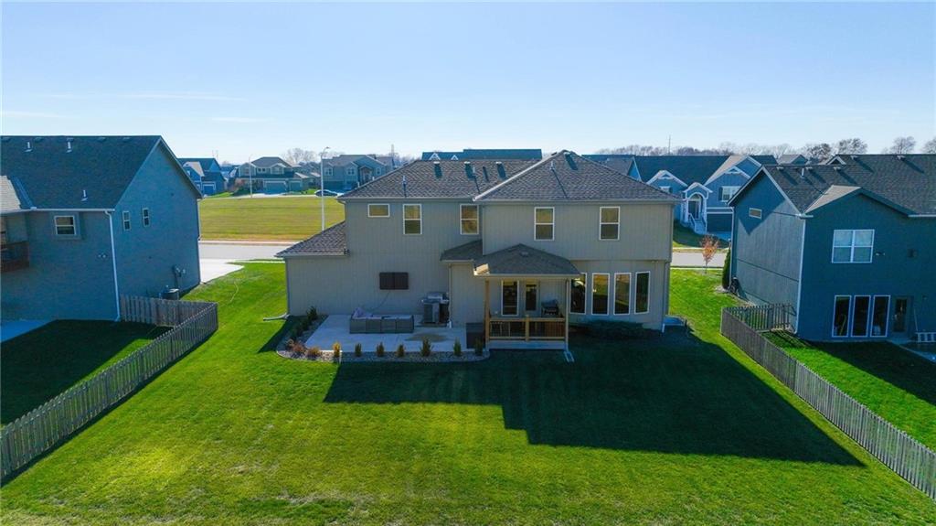 Pristine and "like new", nestled against farmland-this spotless 2 story has it all! Open main floor with 2 story entry, gas fireplace, mud room, built-in banquette w/custom table, walk-in pantry, and wood floors throughout. Expansive windows showcase the peaceful view and outdoor living space featuring a covered wood deck and new 22x20 patio w/weatherproof covered TV. The roomy 2nd floor offers walk-in closets, feature walls, main bath with double vanity, and laundry room. Retreat to the private primary bedroom with soaking tub, separate shower, double vanity, and walk-in closet. The possibilities are endless in creating your dream space in the lower-level w/bath stub and Egress window. Quietly located "off the beaten path", yet close access to freeways and shopping. This is one has it all!