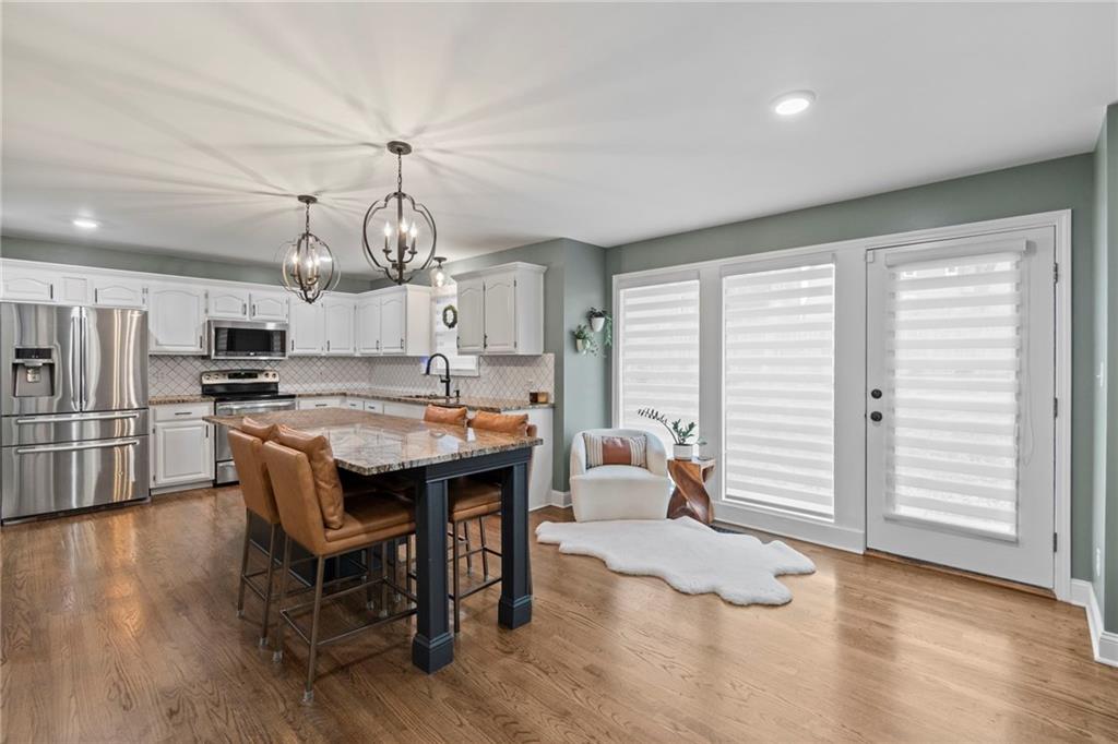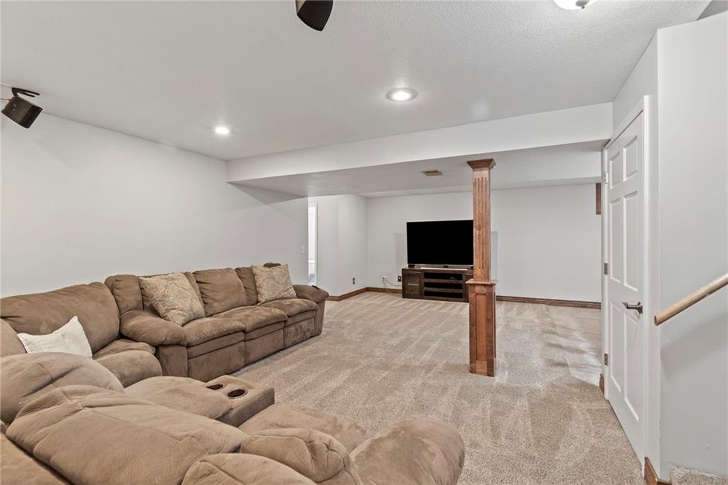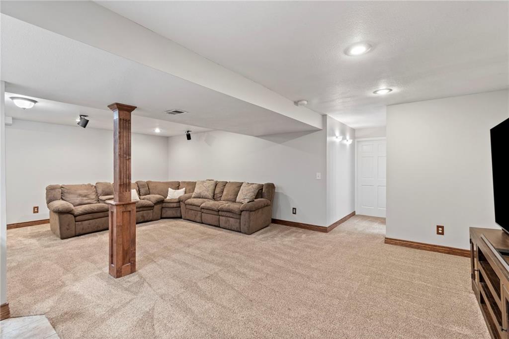 WELL MAINTAINED 2-STORY ON A QUIET TREE LINED STREET WITH A FRONT PORCH FOR RELAXING. Formal Dining Room just off the entry and beautiful hardwood floors throughout the main level. Open floor plan with kitchen/great room updates in 2020. Added new hardwoods, granite countertops, new island and remodeled 1/2 bath and off-kitchen laundry room with luxury vinyl tile. Newer stainless steel appliances. New stone and mantel on fireplace. Custom blinds throughout first floor. Upstairs has 4 bedrooms with an oversized Master. Master Bath has double bowl vanity, Jetted tub, and large Walk-in closet. Beautiful large window in second bedroom could make a sun-filled office space! Tile and carpet in finished basement with 1/2 bath and a wet bar for entertaining. Large storage room adds to the basement space. Step out of the kitchen onto a peacefully landscaped backyard with patio and a HUGE side yard. NEIGHBORHOOD HAS TWO SWIMMING POOLS AND PLAY AREA WITH PLAYGROUND. Large picture windows with views of the beautiful treed lot throughout the home! Convenient access to highways, dining and shopping and located in award winning Liberty School District. This home is move-in ready and it shows!!!