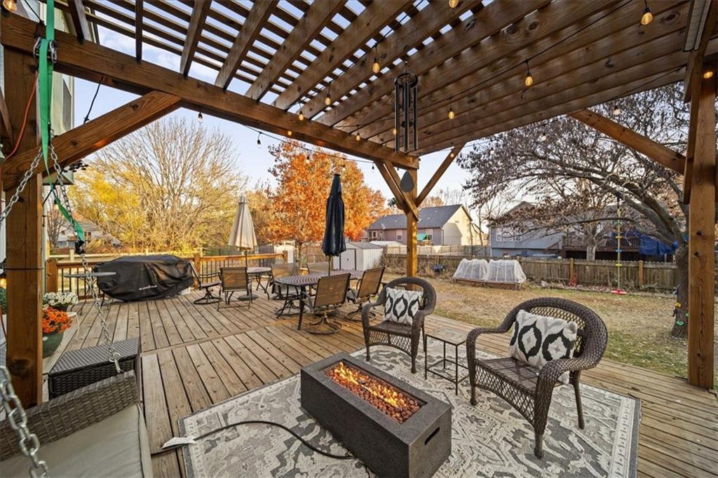 Remarkable Home on a Quiet Lakepointe Cul-de-Sac This beautifully maintained home is loaded with attractive updates and thoughtful details throughout. The inviting kitchen features granite countertops, updated lighting, and gorgeous hardwood floors that continue into the bedrooms. Elegant wrought-iron spindles and abundant natural light enhance the open, airy floor plan. The spacious primary suite offers a refreshed bath with granite counters, a custom tile shower, and a generous walk-in closet. Multiple living areas provide flexible space for a playroom, home office, recreation area, or exercise room. The lower-level living room walks out to a large, flat, fully fenced backyard—perfect for entertaining or play. A standout feature is the expansive deck with a beautiful pergola, offering ample space for outdoor dining, relaxation, and gatherings. It’s truly an extension of your living and entertaining space. Ideally situated in the popular Lakepointe subdivision, this home offers walking proximity to all three award-winning schools, plus convenient access to restaurants, shopping, and everyday amenities. Commuters will appreciate quick access to 435 and K-7 via Johnson Drive.