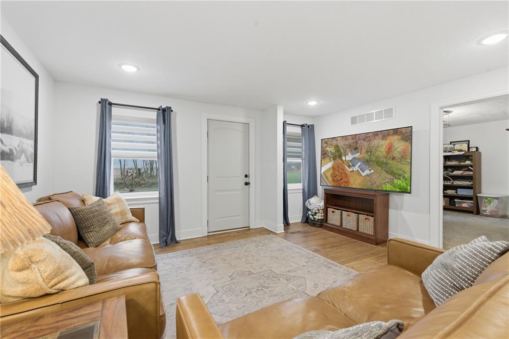 This is a fantastic ranch home that was recently updated to include granite countertops, custom cabinets, and hardwood floors just north of downtown Smithville! The primary bedroom boasts a vaulted ceiling, en suite bathroom, walk in closet and access to the fenced backyard! The two-car detached garage has been insulated and finished and does include a heater making it the perfect workshop. Other upgrades include new retaining walls, a concrete driveway, added attic insulation and a 200 amp electrical panel. Bring your creative skills to the unfinished basement and make it your own! Convenient access to 169 highway and the restaurants and shopping district that downtown Smithville has to offer all while being nestled on a quaint country lot!