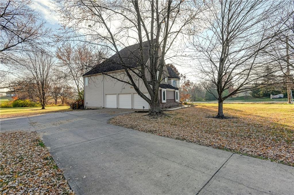 Outstanding Location! Olathe Executive Estates 2 Story home on a corner lot outside of City Limits and NO HOA. Unlimited Entertainment Space Inside and Out! Inside the first floor offers a Formal Dining Room, Large Family Room, the Great Room and Kitchen offer Open Concept Living at it's best with a Wet Bar, Dining Area, Breakfast Bar, Fireplace and easy access to yard. First floor Guest Half Bath and Laundry are nicely tucked away off the kitchen. The second floor is host to an Expansive Owners Suite, 3 additional bedrooms and full bath. The Finished Basement brings unlimited possibilities for entertainment, fun & games with storage space and a full bathroom. The 3 Car Garage provides plenty of parking and storage. No Shortage of Outdoor Space on this 1+Acre Level Yard, Large Deck and YES the Swim Spa is STAYING! Great home with Stone Coated Metal Roof, Nearby Parks & Walking Trails and so much more!