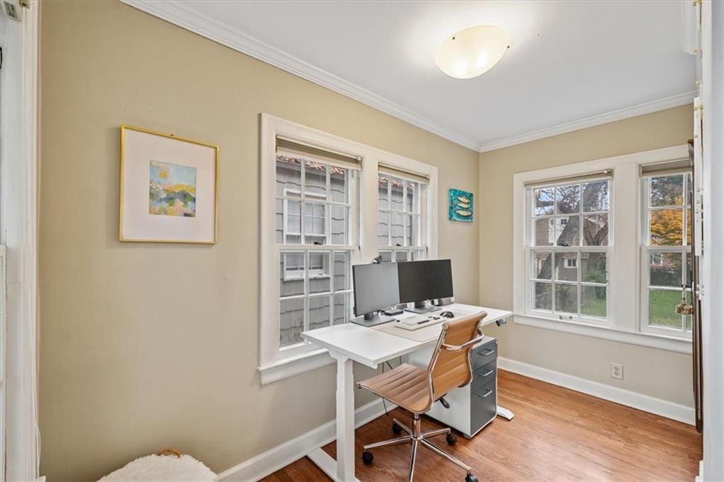Charming inside and out, this Westwood 2-story home sits on a picturesque, tree-lined block and a large lot. Beautifully updated with original character & detail, including curved archways, hardwood floors, fireplace, and woodwork. Living room with a sitting area next to the fireplace, perfect for a cozy Winter day. Private den/office space off the main living area. The dining room features a new, built-in banquette and light fixture. Main-level half bath off the kitchen. All appliances stay with the home, including the washer/dryer. Large primary with a walk-in closet. Updated interior paint. Full, dry basement with lots of storage. Attached garage and storage shed in the backyard. Large deck overlooks the big backyard. Room to add onto this house and still have a big yard. Walk to coveted Westwood View Elementary, Fairway Shops, Woodside, St. Agnes, Miege, parks, and more. Minutes to the Plaza and the highway. SM East area.