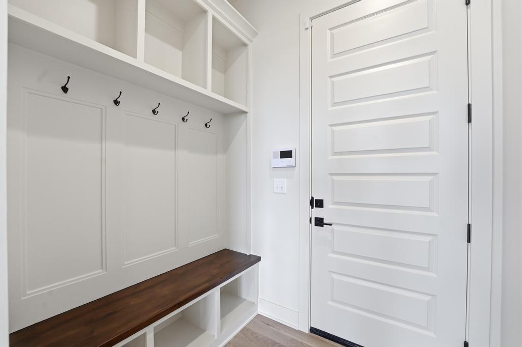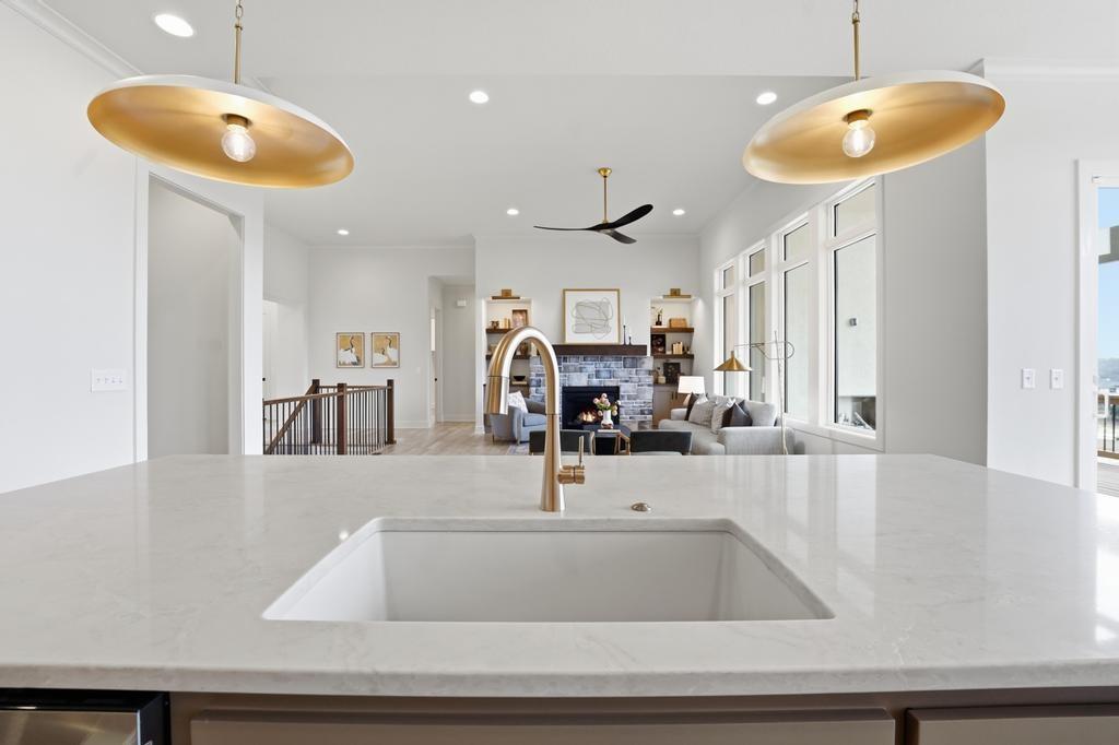 The stunning Emerson reverse 1.5 story plan by French Homes in Cedar Creek's newest community - The Estates of Canyon Oaks. Located in the award-winning Olathe School District, this reverse 1.5 story home has 4 beds, 3.5 baths, 3 car garage and sits on a walkout lot on a cul-de-sac. Step inside the double wide doors into the entry which leads you to the spacious family room with wood floors and fireplace with built-in cabinet surrounds. The gourmet kitchen features an island, custom cabinets with hood, cooktop, built in oven/micro and a generous sized prep pantry with storage, sink and beverage cooler. The eat-in dining space has a built-out space perfect for a hutch and also connects to the covered deck - perfect for morning coffee. The private main level primary suite offers a spa-like bathroom that includes double vanities, free-standing tub, shower with bench and a huge walk-in closet that conveniently connects to your laundry room. Main level also has a second bedroom, full bath and a mudroom with bench off the garage. The walkout lower level includes a large rec room with second fireplace, wet bar with island and two additional bedrooms, 3rd full bath and a half bath perfect for guests. Plenty of unfinished storage space left too. Enjoy Cedar Creek's amazing amenity package that includes 3 neighborhood pools, community clubhouse with exercise room and indoor basketball court, lit pickleball and tennis courts, access to 65 acre lake, monthly neighborhood events, walking trails and more.