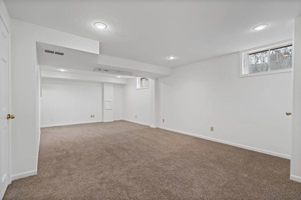 This beautifully maintained Overland Park home has been loved by the same owner for nearly four decades and shows remarkable care inside and out. Major exterior upgrades give it lasting value, including James Hardie fiber-cement siding, Simonton insulated windows, a ProVia front door, fresh exterior paint, and a newer driveway and expanded back patio. Inside, the bright and welcoming layout features brand new carpet throughout, fresh interior paint, and an easy flow between the formal dining room, large kitchen, eat-in area, and the spacious step-down family room. The kitchen offers an abundance of cabinet storage, updated hardware, a stainless dishwasher, and great natural light. The family room feels open and inviting with updated paneling, a black brick fireplace, and direct access to the backyard. Upstairs, the generous primary suite includes a large walk-in closet and a beautifully updated bath with a dual-sink granite vanity and oversized walk-in shower. Three additional bedrooms share an updated hall bath with refreshed finishes and clean, modern touches. The finished lower level provides excellent bonus living space along with a dedicated unfinished storage room. Outside, the fenced yard is shaded and private with a stone retaining wall, expansive newer patio, and a matching garden shed. Located in an established neighborhood with excellent schools, quick highway access, and JCCC just around the corner, this home offers both comfort and long-term peace of mind with thoughtful updates already completed.