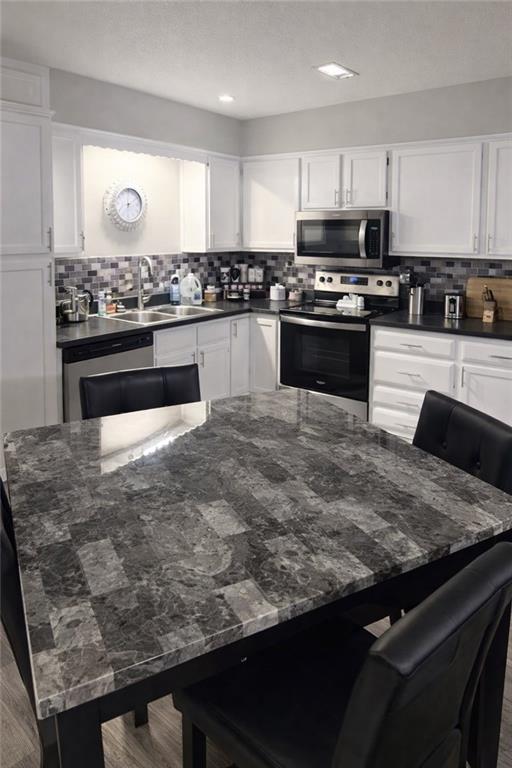 First time home buyer gem! Lovingly cared for 3 bedroom 1 and 1/2 bath townhome. Beautiful updated kitchen with a large eating area all open to a welcoming, bright family room with an eye catching fireplace. Recently painted, newer carpet and luxury vinyl plank flooring. Ample deck for entertaining overlooking a beautiful large lot! This is an end unit and very quiet! All electric so LOW, LOW electric bills. Upstairs you will enjoy 3 good size bedrooms a full bath with double vanity. Nicely located with easy highway access. Very reasonable HOA @ 100 a month , it insures the outside of home along with mowing and trash pick up. Notice the Large concrete pad for extra parking. Washer, Dryer, refrigerator are staying. The 65" tv in the living room and tv in the bedroom are staying. Home warranty is included! This is one you will want to look at! Can be used as an investment property. OPEN HOUSE SUNDAY JANUARY 17, 2026 2-4