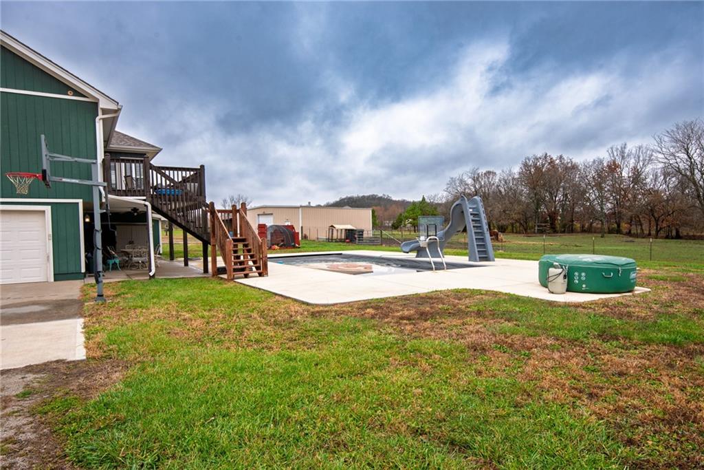 This home is truly incredible! Remodeled in the past 5 years and set on 3 ± acres, it offers a perfect blend of modern comfort and country living—plus a stunning inground pool. Inside, you’ll find 4 bedrooms and 3 full baths, along with newer flooring, custom cabinets, granite countertops, plantation shutters, and so much more including fireplace. Large master bedroom with tiled shower and large walk-in closet, plus access to full-length deck off the back with covered patio underneath. The 18x36 inground pool, added in 2019, features an automatic cover, Turbo Twister slide and a 10' concrete patio surrounding the entire area. Outside, roof just replaced on home in 2025 plus the 30x40 outbuilding with a 10x40 lean-to offers tons of storage and flexibility. The back part of property is fenced and ready for horses. You truly have to see this one in person—more photos coming soon!