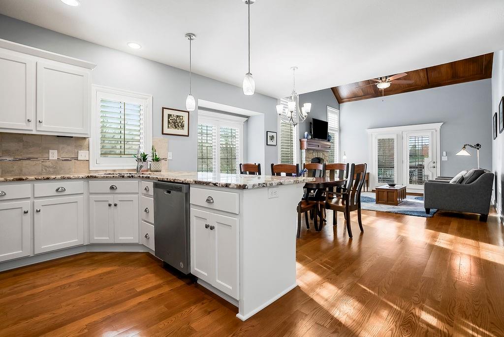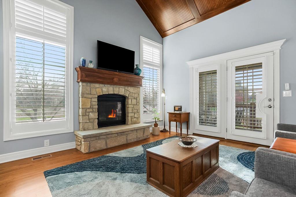 STUNNING "Reverse 1.5-Story" in Leawood! It’s maintenance-provided, and the key to easy living! Immaculately cared for and truly in “mint condition,” this end-unit home offers crisp, modern updates, main-level living, and an effortless lock-and-leave lifestyle. The main-floor primary suite includes an oversized shower, upgraded granite dual vanities, and a walk-in closet. You’ll love the vaulted great room with upgraded ceiling trim and the refreshed kitchen featuring freshly painted cabinetry, new rollout shelving, a breakfast bar, and a true walk-in pantry. The screened-in porch is incredible—opening to a stamped-concrete patio perfect for grilling and overlooking beautifully manicured grounds. The finished lower level feels bright and open with taller ceilings, a spacious family/rec room, two generous bedrooms with walk-in closets, and another full bath. A large unfinished area provides excellent storage. Leabrooke Town Manor offers a resort-style experience with a private pool, clubhouse with 24-hour gym access, walking trails, stocked fishing pond, and tennis/basketball sport courts. Exterior maintenance is handled for you here, so you are more free to enjoy the amenities – so many of them nearby. Exterior maintenance includes all of these: roof repair/replacement, exterior painting, mowing/trimming/fertilizing/sprinklers for the lawns, as well as your interior WATER bill, insurance for the townhome buildings, professional management services, etc. HOA info/details are in the Realtor MLS supplements and the binder at the home. Unbeatable South Leawood location—just minutes from Leawood Town Center, PrairieFire, top-tier dining and shopping, IRONWOODS PARK, mulitple golf courses (public & private), world-class fitness options, and Chicken N Pickle. Everything you love is close by. The easy lifestyle is here!