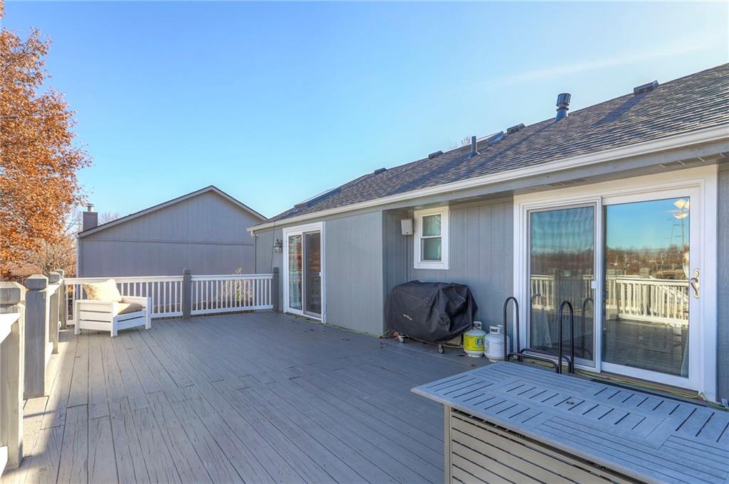 Add this stop to your Black Friday Shopping at the Open House 10am-12pm 11/28/2025!! Beautifully updated 3-bedroom, 2.5-bath home in the heart of Grain Valley! Step inside to a warm and inviting living room featuring a stunning fireplace and a large bay window that fills the space with natural light. The home offers peace of mind with new skylights, roof, windows, and gutters throughout. The bright and open dining room offers one of two convenient walkouts to the massive oversized deck—perfect for morning coffee, hosting gatherings, or enjoying the crisp holiday season air. The main-level primary suite includes its own private deck access, a vaulted ceiling, and a spacious en suite bathroom. Downstairs, the finished basement provides a fantastic second living area or family room with a half bath and bar area, ideal for holiday movie nights or welcoming guests. Outside, enjoy a low-maintenance lifestyle with a sprinkler system and a new concrete patio, offering even more space for entertaining during the upcoming festive months with a full privacy fence. With the holidays right around the corner, this move-in-ready home is the perfect place to celebrate, host, and make memories. Don’t miss your chance—homes like this don’t stay on the market long!
