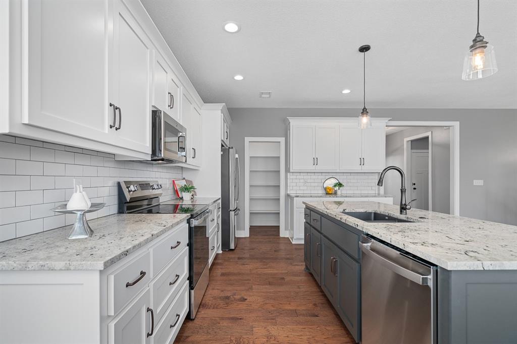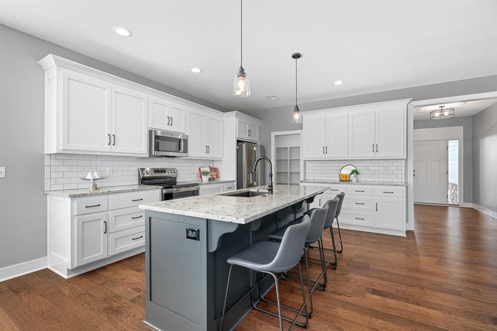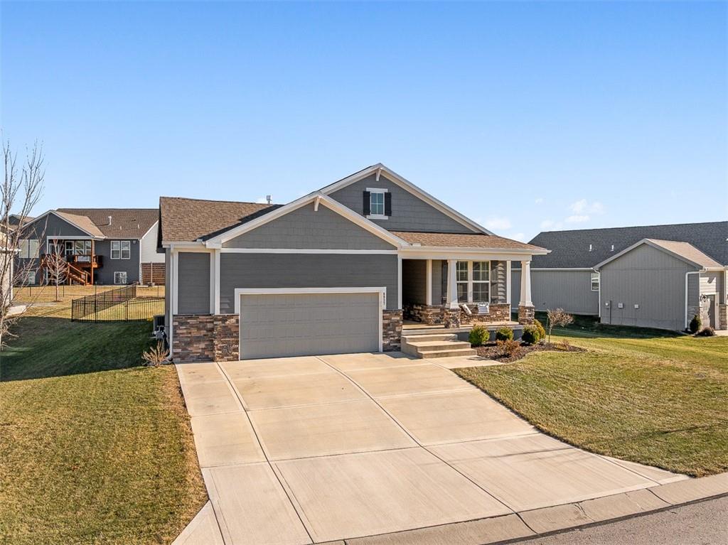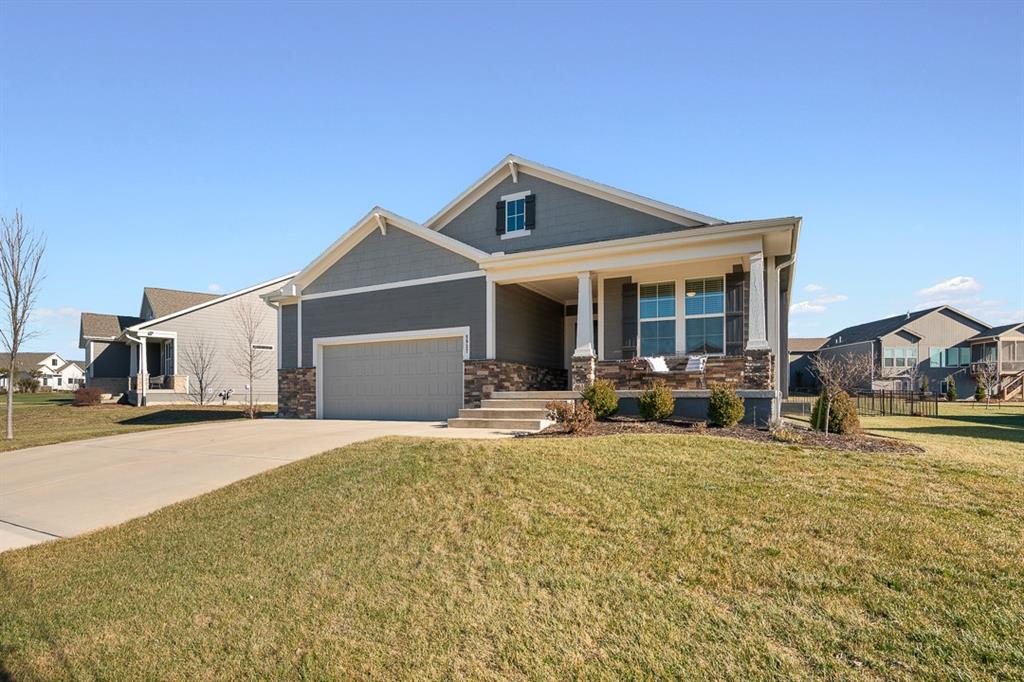 Stunning Reverse Ranch in The Reserve – Built in 2021, Shows Like a Model Home! Welcome to this meticulously maintained reverse ranch located in the highly sought-after Reserve neighborhood. Built in 2021, this move-in ready home offers modern design, thoughtful upgrades and the convenience of main-level living. With 3 bedrooms and 3 full bathrooms, it combines elegance, functionality and comfort in every space. Interior features spacious layout including 9-foot ceilings throughout, great room, and elevated trim package which create an open, airy feel. Natural light provided by Pella windows flood the home with sunlight, highlighting the beautiful finishes. Elegant flooring includes hardwood floors that extend through the great room, entryway, kitchen and dining area. Gourmet kitchen includes large granite island, huge walk-in pantry and abundant cabinetry that make cooking and entertaining a delight. Master suite retreat includes bedroom with en-suite bathroom featuring a large walk-in closet, granite double vanity, large, tiled shower and modern finishes. Finished basement includes a spacious family room, bedroom, full bath and generous unfinished storage space. Back patio is perfect for morning coffee or evening relaxation. Large lot features metal fencing, beautiful landscaping and lawn sprinklers that enhance beauty and convenience. Enjoy all the perks of The Reserve with low HOA dues including walking trails, pool, basketball and tennis courts, playground and clubhouse. Conveniently close to Lenexa City Center and only 2 minutes from the K-7/K-10 highway corridor. Served by the award-winning Olathe School District. This home truly shows like new construction and offers the perfect blend of style, space and community. Don’t miss the opportunity to make it yours — schedule a showing today! Open houses - Jan. 3 (1:00pm - 3:00pm) Jan. 4 (1:00pm - 3:00pm)