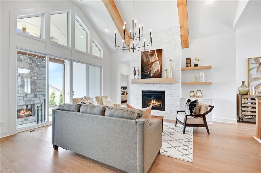 The "Bayberry I" by JFE Construction is here! This 4 bed 3 bath Reverse is on a Walkout Lot! As you enter through the double doors to the grand foyer you are greeted by incredible natural light pouring in to the Great Room windows. The vaulted Great Room has a cozy fireplace and leads out to the covered deck with yet another fireplace! The kitchen has a large island, ample counter and cabinet space with a walk-in coffee bar counter leading into the walk-in pantry. A mudroom boot bench off the garage interior entry. The Primary En-Suite has a box-vault ceiling, amazing windows leading into the bathroom with double vanity, standalone tub, walkin closet and tiled shower with seat. Main level laundry room next to the Primary Bath. Bedroom #2 or office, next to a full bathroom #2 with shower. The Lower Level boasts a luxurious Family Room with a walkout to the back yard to even more outdoor living. Entertaining in the Lower Level is equipped with a Wet Bar, Island/Bar all with ample windows to let all the light in! All in the coveted Heritage Ranch, A Lambie-Rieke Community, with Amenities Galore such as state-of-the-art pool, clubhouse, trails, pickleball. play area, half-court basketball, Putting Green & ponds and so much more coming soon! This community provides a wonderful lifestyle and right next to the 1,238 Acre Heritage Park with Dog Park, Sports Parks, Golf, Lake, Trails and so much more! Contact Onsite Agents for Estimated Completion of homes on site, and design selections. Our Welcome Center Office is now open & located on LOT 65 at 15388 W. 161st Terr. We are available 7 days a week for showings of Models & Specs. Renderings &/or images may show features and sq ft that are subject to change. Welcome Home to Heritage Ranch - one of the last NEW Home Communities in Johnson County! SPEC HOME is Under Construction with an Estimated Completion JAN 2026 on LOT 17.
