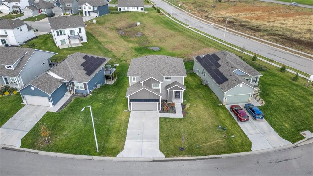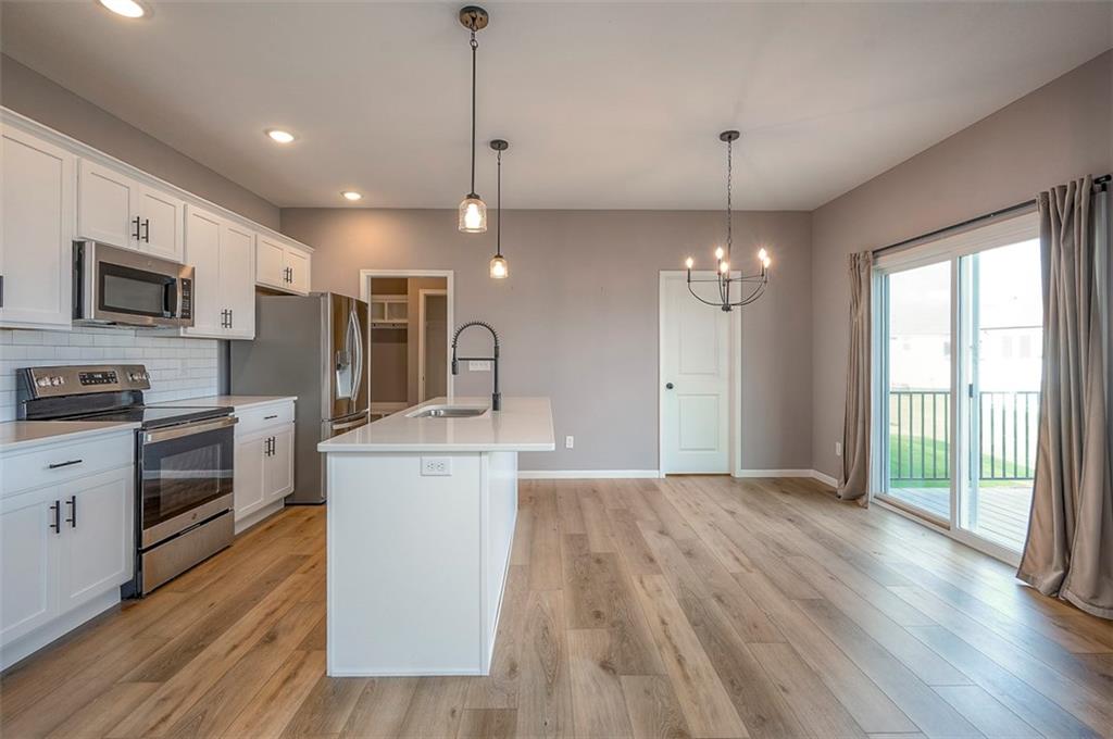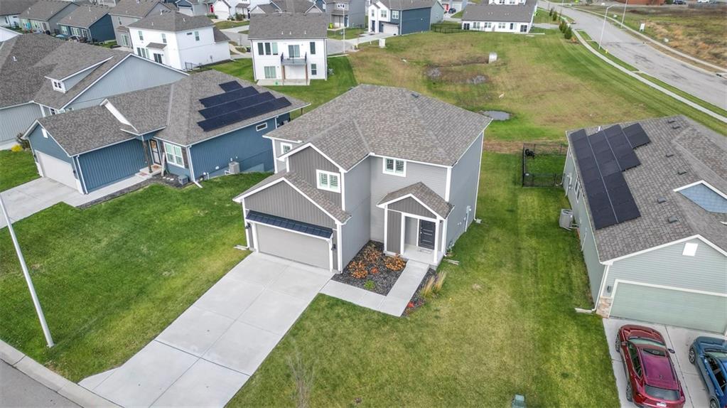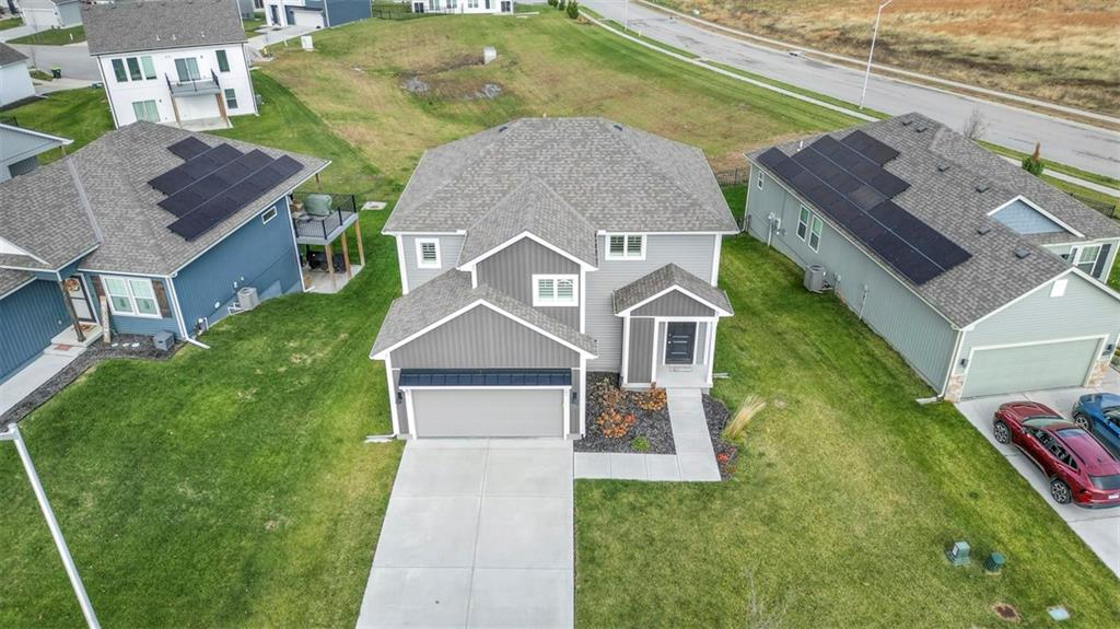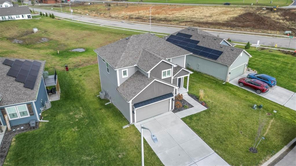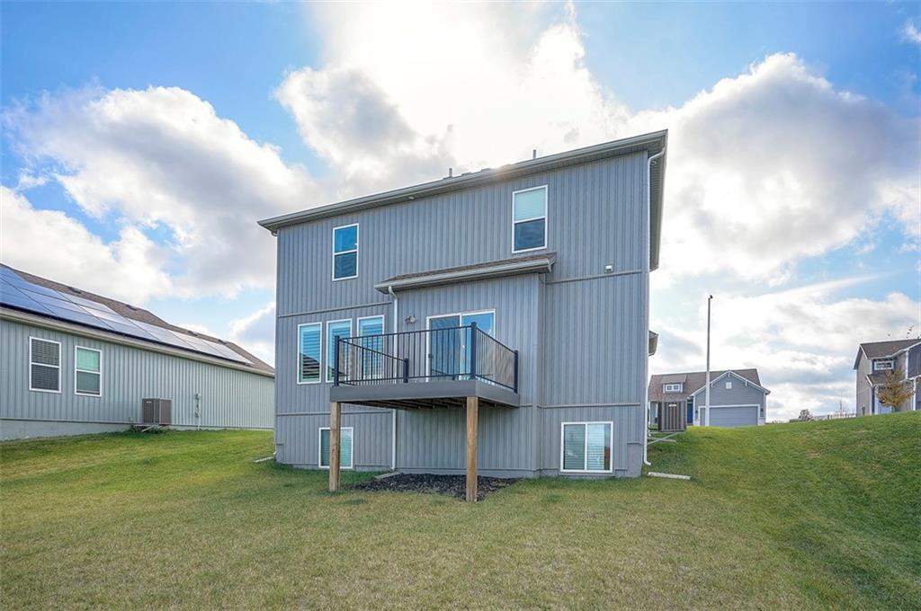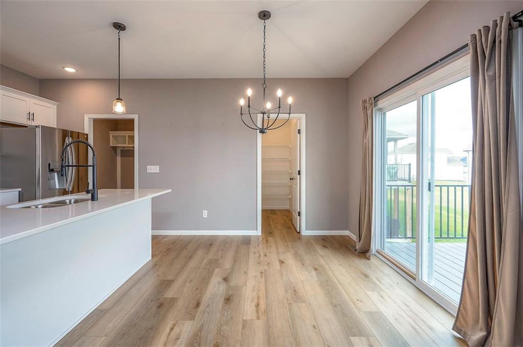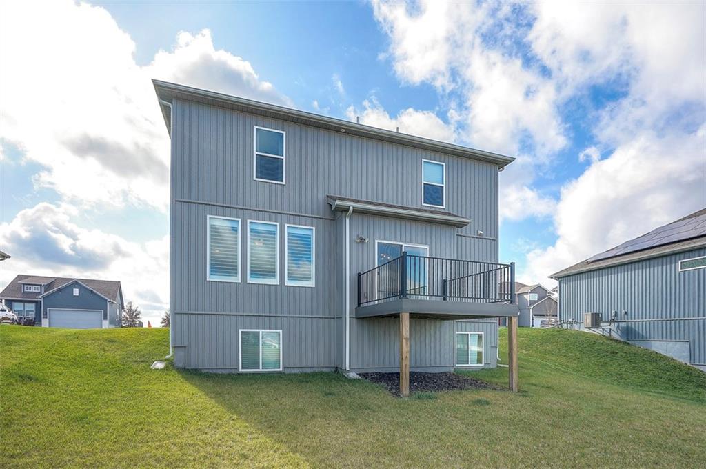 Greenwood / Lees Summit 3 bedroom 2 1/2 bath TWO STORY offers The open-concept main level and is designed for today’s lifestyle. A seamless flow between the living room, kitchen, and dining spaces makes it perfect for both everyday living and entertaining. Upstairs you’ll find three spacious bedrooms, a central laundry room, and a primary suite that feels like a retreat with spacious walk-in closet, private bath, and the space you need to unwind at the end of the day. The unfinished basement comes with two full sized egress window exits and is stubbed for a bathroom and ready for your personal use. A nice above ground North facing deck off the kitchen for morning coffee or evening refreshment opens to a green space ( Neighborhood retention lake ) behind the home that cannot be developed. Enjoy peaceful mornings, quiet evenings, and a sense of space vs a neighbors back yard. This two story is in a vibrant community with a pool, neighborhood events, and highly rated Lee’s Summit schools, this home offers both connection and convenience. Quick highway access to highway 7 and 50 highway makes commuting simple, and window treatments, towel hangers are already installed, saving you time and expense. This home offers style, function, and room to grow!